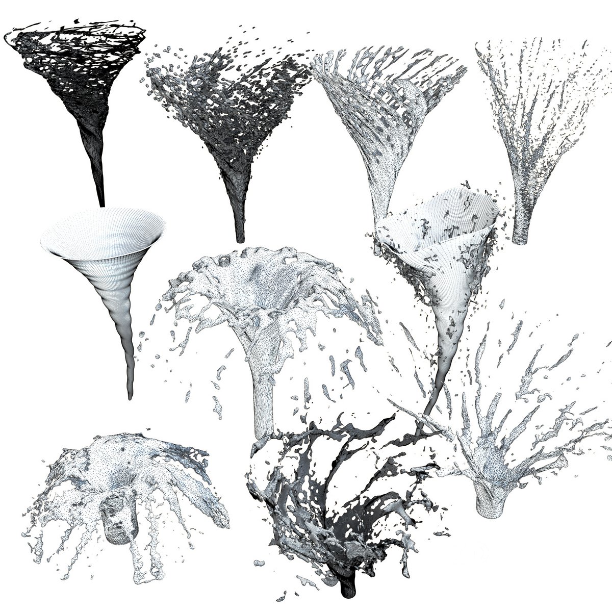 All the 10 splashes are separated from each other. |