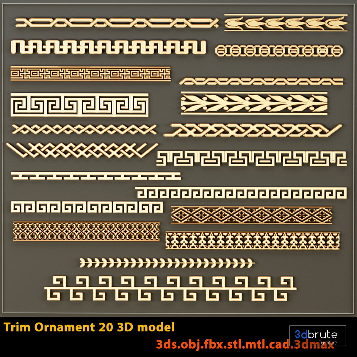 Description: All models are completely seamless All models Carefully designed and have a correct mesh Models have a great variety of Celtic patterns You will get: .MAX files (saved in 3D max 2013) .OBJ files .DWG files .FBX files .3DS flies .mtl files .stl files |