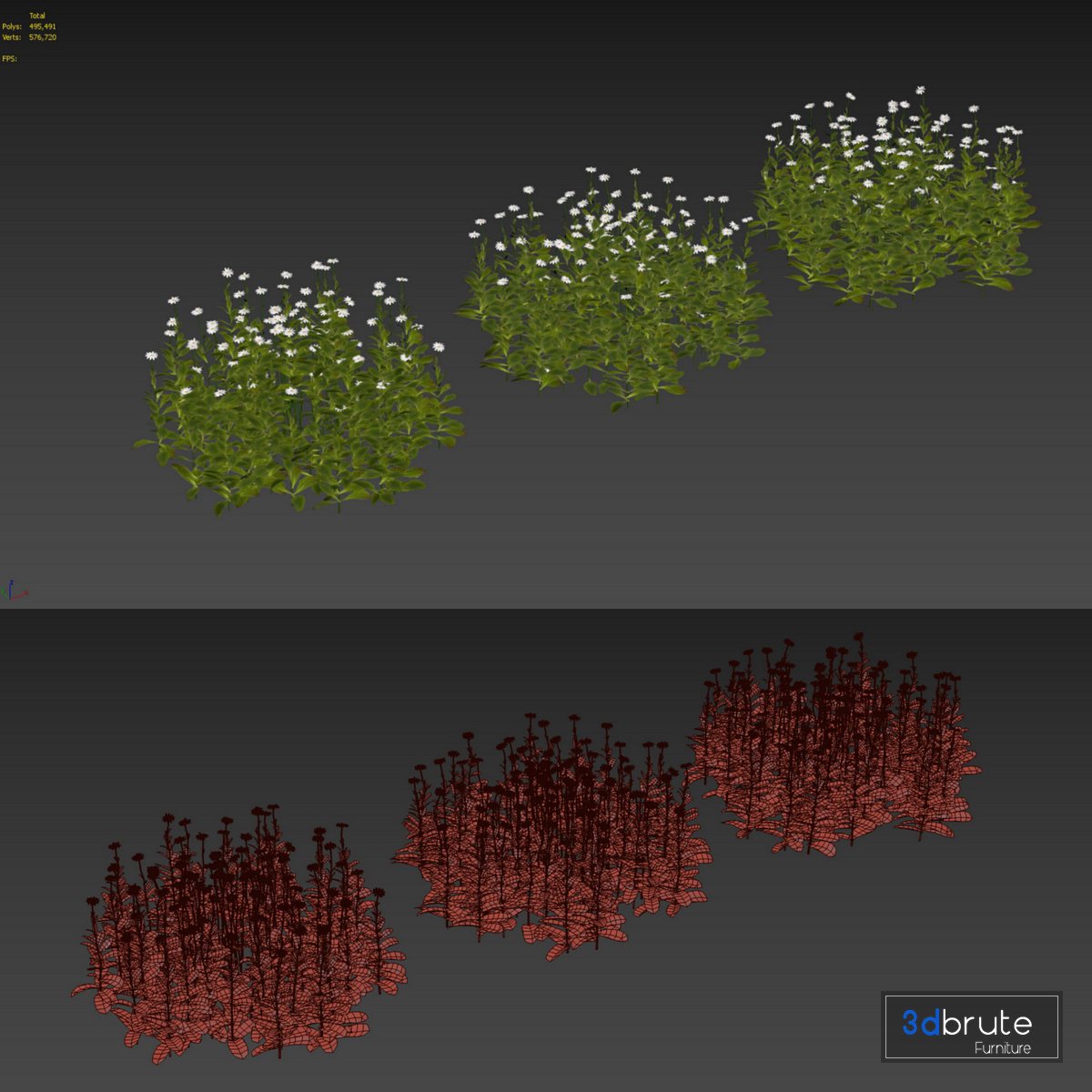3 Daisy White Flower Bush Plants Set 01 |