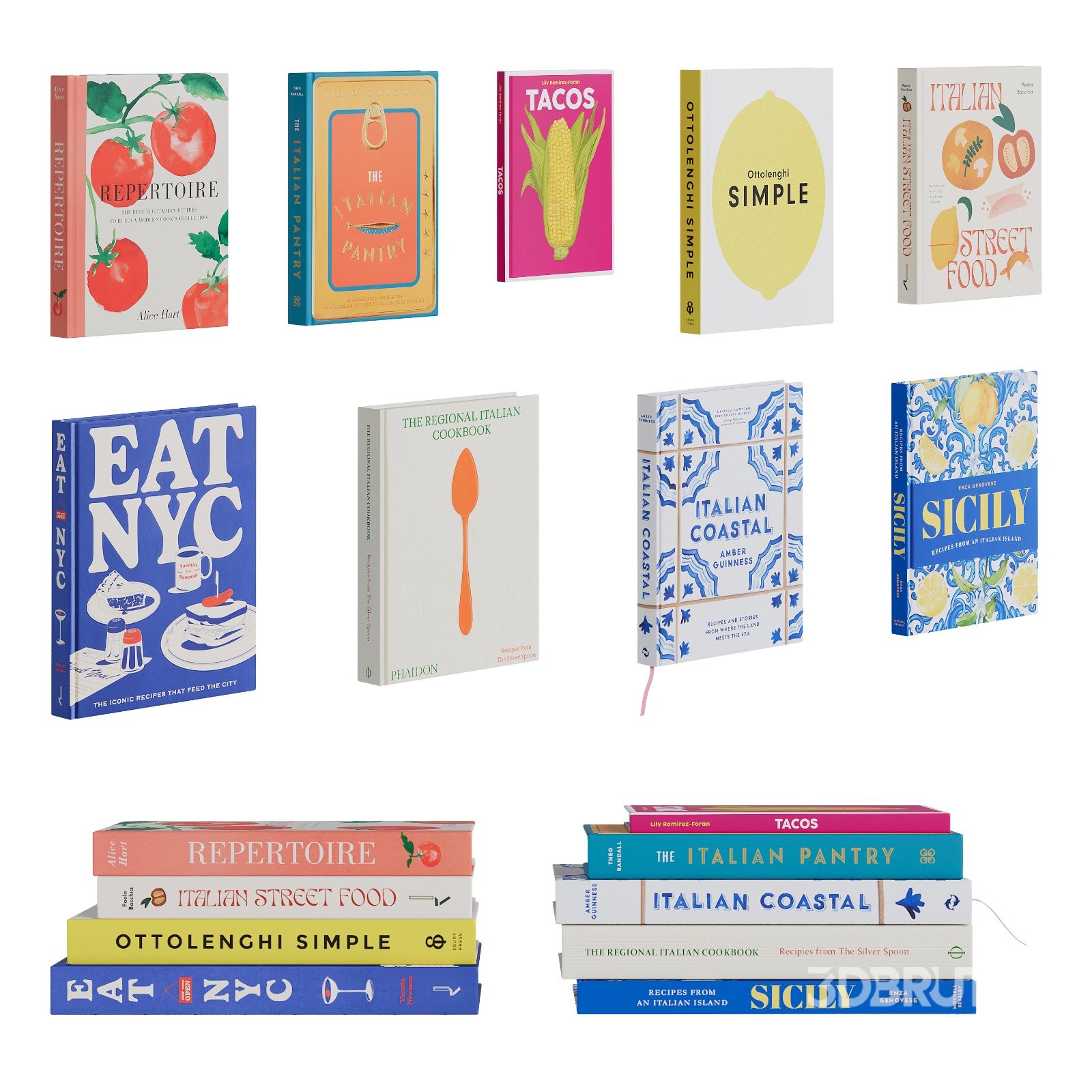A set of colorful kitchen cookbooks. Preview was rendered with corona version 12 Front and back of all books are textured In archive: |