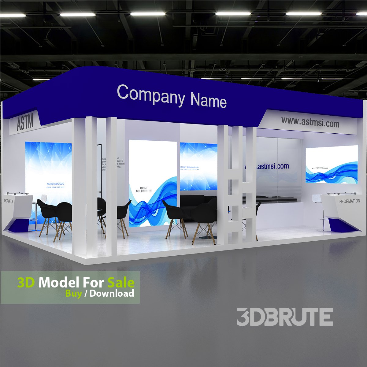 Customizable 3D Exhibition Booth / Trade Show Stand Size: 5m X 7m This professional 3D booth model is designed for exhibitions, trade shows, expos, fairs, and event displays. It is fully editable, optimized, and ready for rendering. Perfect for creating exhibition stands, trade show stalls, expo booths, modular displays, kiosks, and commercial fair setups. Features: • Formats: 3DsMax (2016+),All version above 2016 like 2017-2018-2019-2026-2027 and.... • Render Engines:V-Ray •Easy and Fast rendering ((just 1 minute for each Render)) • Units: Centimeters – correct scale and proportions |