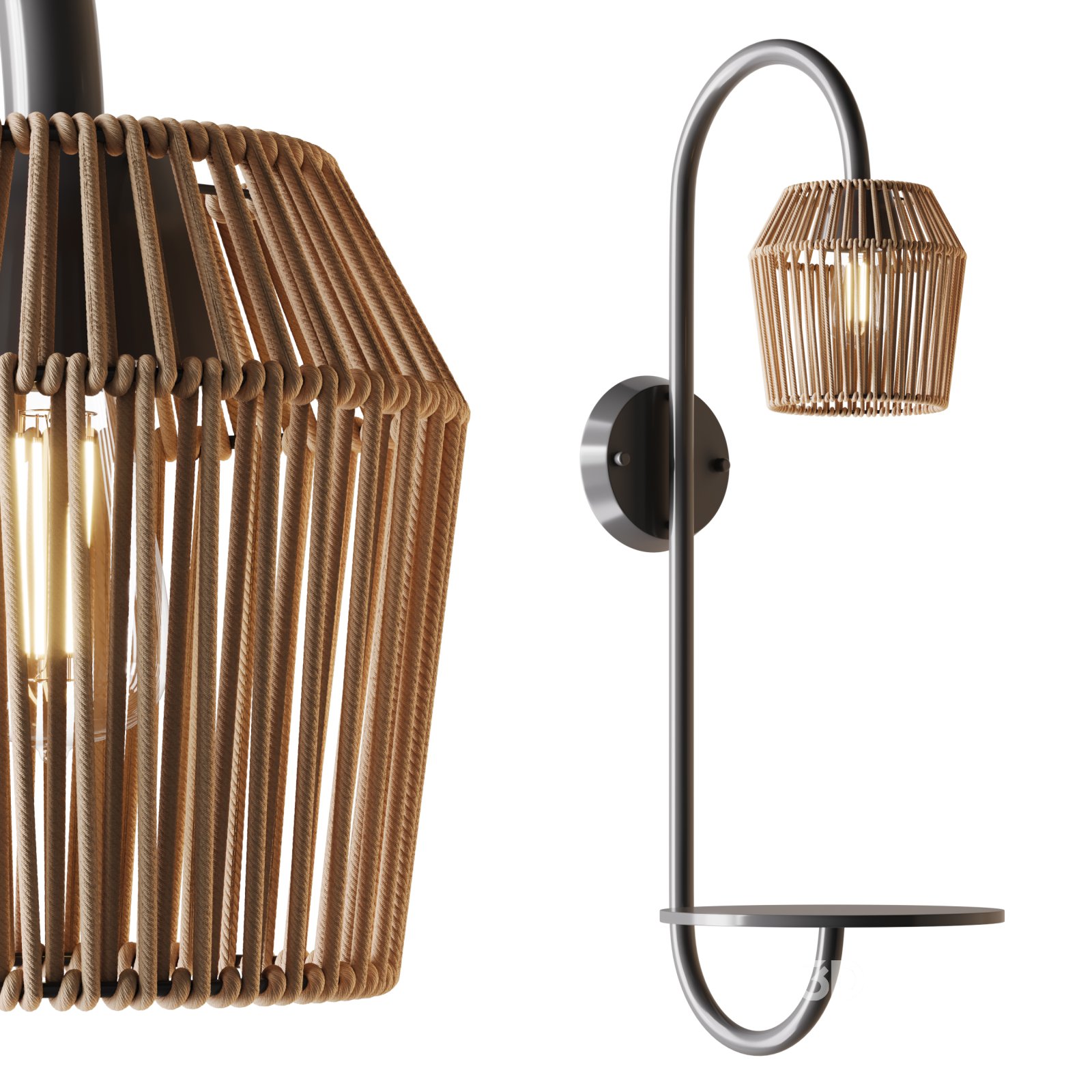 Tags: wall sconce 3D model, plug-in lamp, rattan wall light, tray table lamp, boho interior lighting, tropical decor light, decorative wall fixture, Corona render light, high-poly sconce, home decor lighting, wall mounted lamp, eclectic style light, bedside wall lamp, woven rattan lamp, FBX wall light, OBJ light fixture, photoreal lighting asset, interior light decor, reading light with shelf, plug-in wall sconce