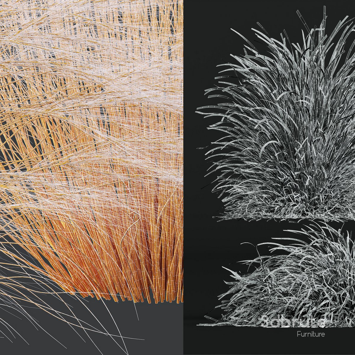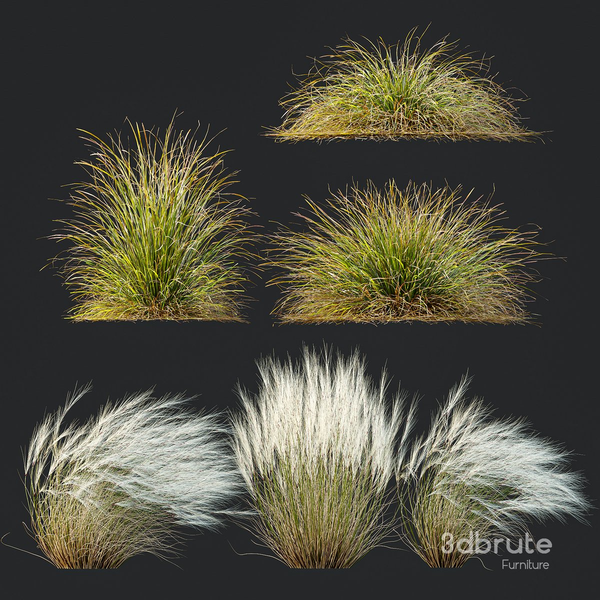 Anemanthele lessoniana and Ostnica Mocna Pony Tails 6 Different 3D models in the scene Height: 38 cm & 52 cm & 56 cm & 66 cm &70cm & 77cm Note: - To use the max file you need to use at 3dsmax 2015 If you have any problems for setting up the models, |