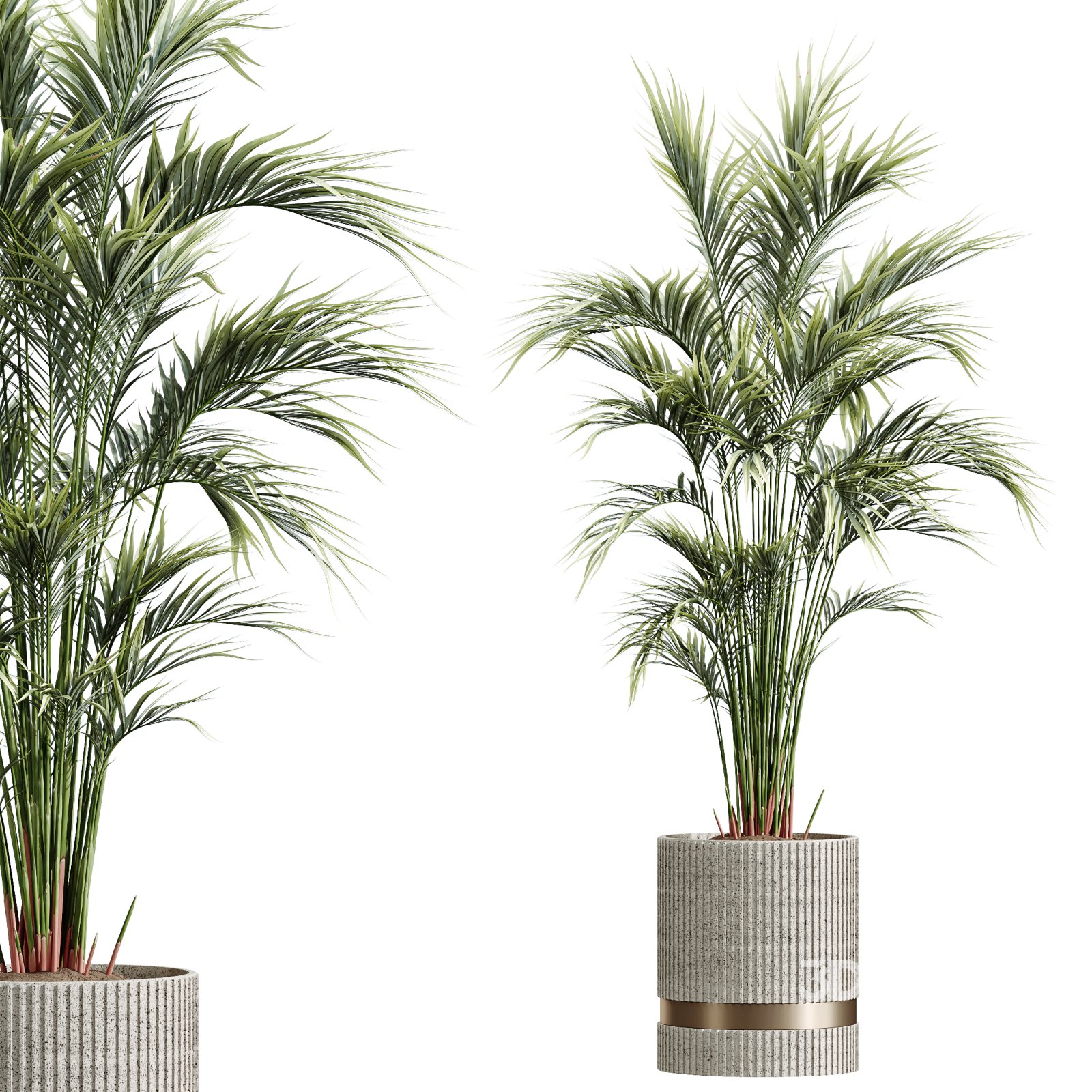 AV Areca Majesty Palm Set02 includes two highly realistic models of the Areca Palm (also known as Cat Reed Palm), designed for stylish interior spaces. These tropical plants are presented in textured concrete pots with metallic accents, combining modern elegance with natural beauty. Their fine, arching fronds and balanced structure make them ideal for use in living rooms, offices, hotel lobbies, and any 3D scene that needs a calm and refreshing green touch. Height: 105 cm, 175 cm 1- Materials is archive (material library) 2- Polys: 800387 + Verts: 1022421 3- 4K texture + 4K material 4- JPEG (texture), MAX + MTL + OBJ + FBX 2014 5- 3dmodels: MAX + OBJ + FBX 2014 6- Corona render + Vray render (Renderer Engine-MAX + FBX) 7- Models have unwrapped overlapping and maps supported traditional 3ds Max texturing. Note: Bring harmony and elegance to your render with these tropical indoor palms — a top choice for clean, modern visualizations. If you have any problems for setting up the models, send me a message here. |