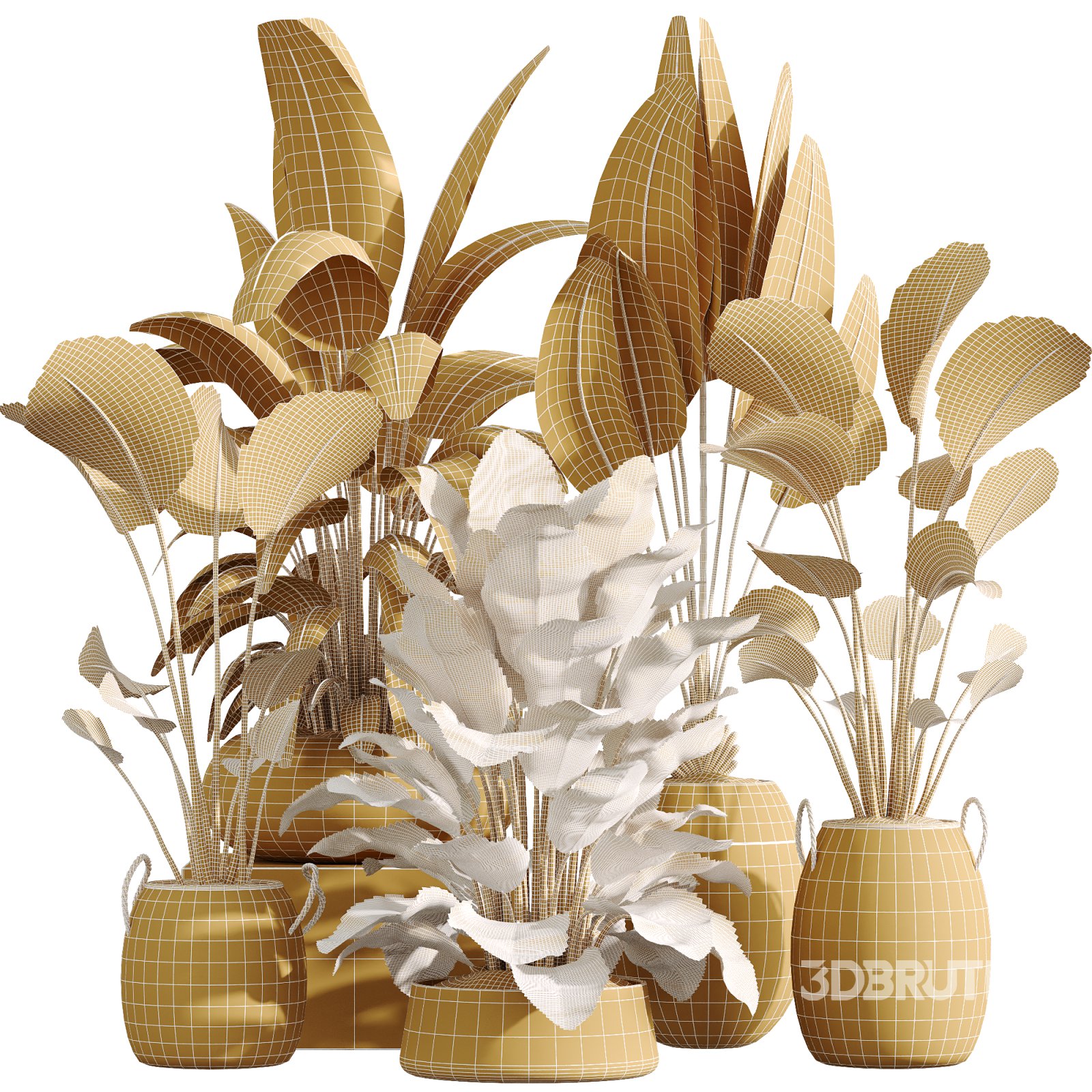 The AV Indoor Plants Set 222 3D Model offers a stunning ensemble of large-leaf tropical plants from the Strelitzia family, including Bird of Paradise (Strelitzia Reginae) and Banana Strelitzia Nicolai. Known for their tall, upright structure and paddle-shaped foliage, these plants bring a bold architectural presence and a luxurious tropical mood to any 3D interior space. The models are presented in a curated selection of high-end designer planters. The collection features: - Two natural woven-style basket pots with vertical ribbing and rope handles—perfect for relaxed or bohemian interiors. This combination of plant volume and pot diversity offers great visual rhythm, contrast, and cohesion—ideal for upscale residential renders, hospitality interiors, and product styling. Technical Details: This lush tropical plant set brings sculptural energy, botanical beauty, and premium visual storytelling to your 3D scenes. If you have any questions or need help with the setup, feel free to message us here. |