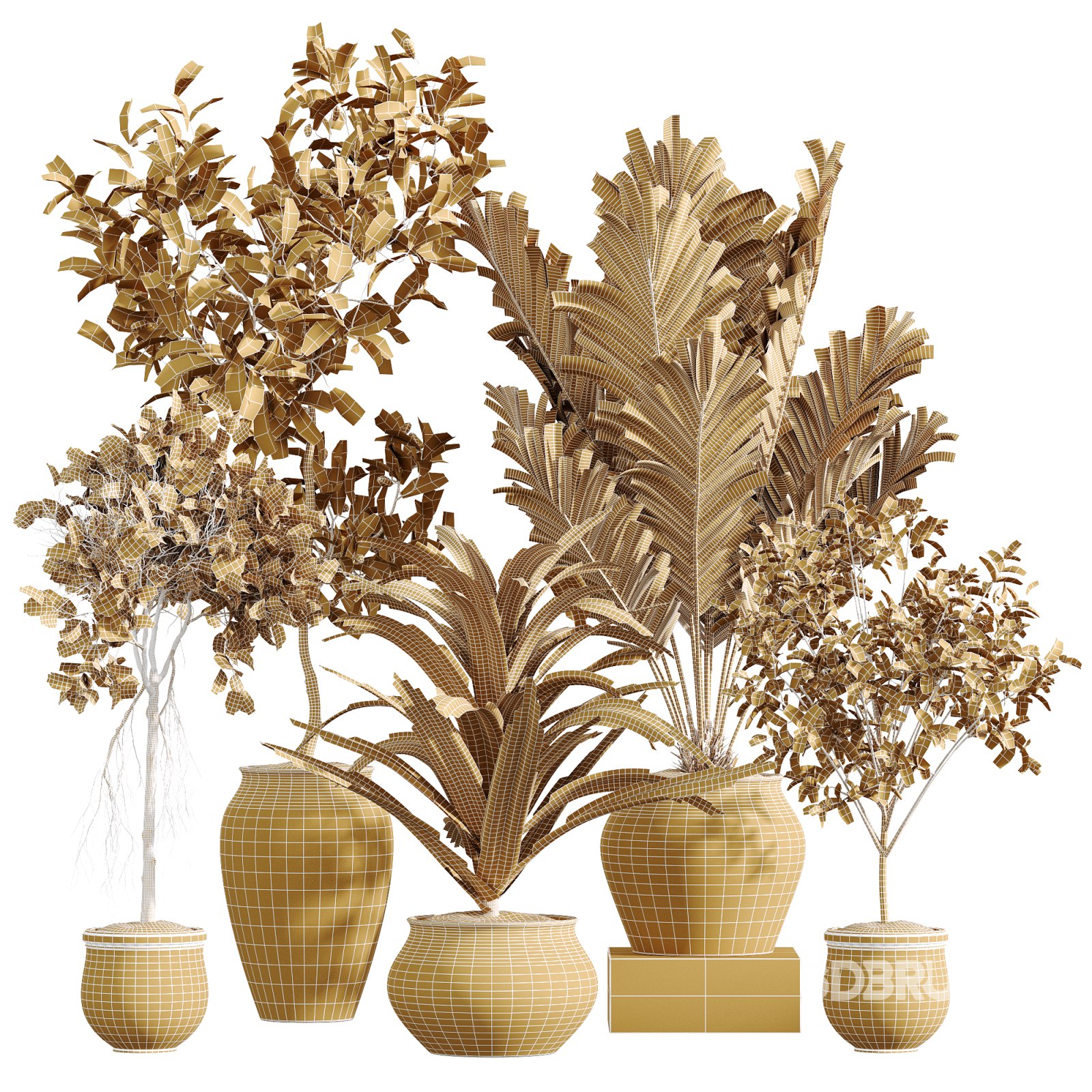 ### AV Indoor Plants Set 258 – Olive, Eucalyptus, Palm Paradise, Dracaena, Briful This distinctive indoor plant set is curated to bring a sense of cultivated elegance and raw vitality to modern interiors. The **Olive tree**, with its iconic silvery-green foliage and slightly twisted trunk, introduces Mediterranean charm and rustic depth. The **Eucalyptus**, soft and luminous, adds an airy, fragrant silhouette that breathes freshness into every corner. The **Palm Paradise** rises with striking verticality and dense fronds, offering tropical grandeur that commands attention. **Dracaena**, known for its bold, sword-like leaves, brings architectural structure and organic rhythm. The set is completed with **Briful**—a delicate, bushy accent that softens the arrangement with a sense of lightness and botanical diversity. All plants are housed in beautiful handmade clay pots with a range of earthy tones and textures—from coarse stone to weathered terracotta—designed to elevate both rustic and minimalist interiors. Height: 105 cm, 110 cm, 125 cm, 170 cm, 205 cm Note: If you have any problems for setting up the models, send me a message here. |