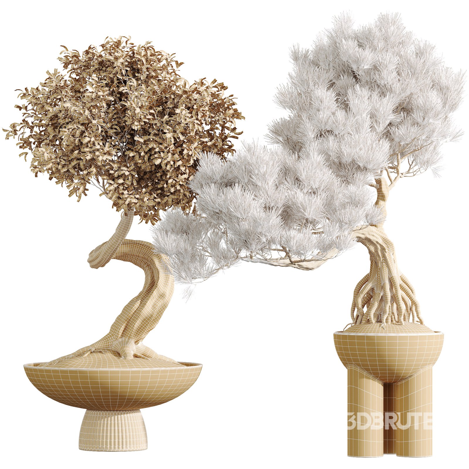 This premium 3D model set highlights two iconic bonsai species celebrated for their artistry and elegance. Ficus Retusa Microcarpa Bonsai Ginseng features dramatic aerial roots and a sculptural trunk, complemented by dense, glossy foliage. Pinus Pentaphylla Thunbergii, a Japanese bonsai pine, displays fine needle clusters and graceful, windswept branching, embodying timeless Japanese tradition. Together, they bring authenticity, balance, and refined beauty, making this set perfect for luxury interiors, Zen-inspired projects, and architectural visualizations. Highest altitude: 195 cm 1- Materials is archive (material library) 2- Polys: 1068428 + Verts: 1916750 3- 4K texture + 4K material 4- JPEG (texture), MAX + MTL + OBJ + FBX 2014 5- 3dmodels: MAX + OBJ + FBX 2014 6- Corona render + Vray render (Renderer Engine-MAX + FBX) 7- Models have unwrapped overlapping and maps supported traditional 3ds Max texturing. Note: Perfect for Zen gardens, Japanese interiors, and architectural projects requiring detailed and realistic bonsai models. If you have any problems for setting up the models, send me a message here. |