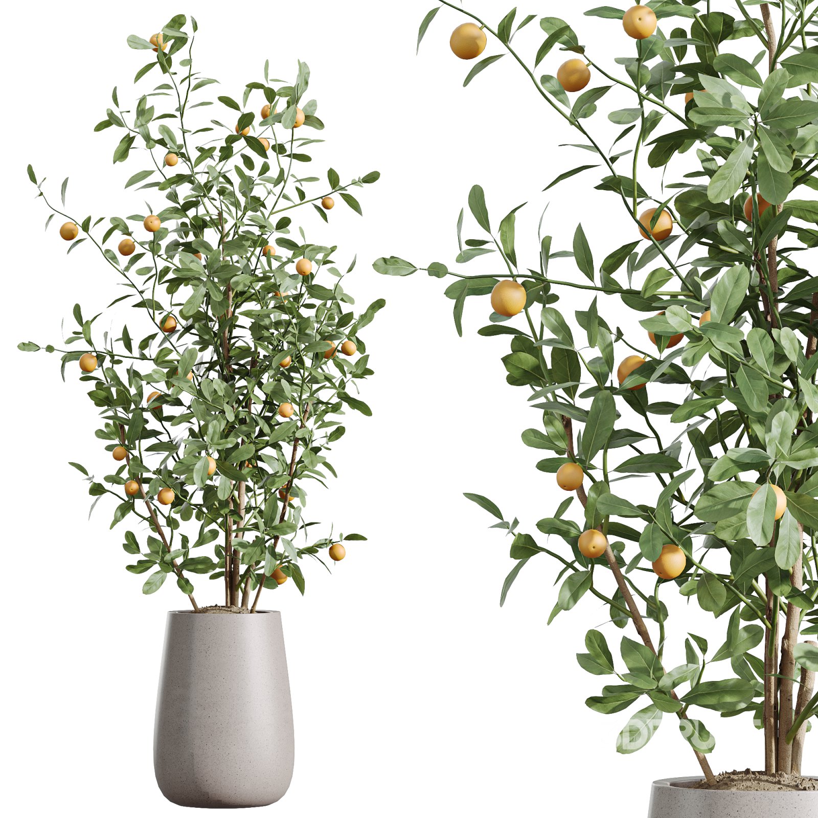 A vibrant indoor plant set featuring three striking species: Ravenala Banana, China Orange Tree, and Spineless Yucca. The Ravenala Banana adds a bold tropical presence with its large fan-like leaves, the China Orange Tree brings freshness and vivid detail with fruiting branches, and the Spineless Yucca contributes sculptural greenery with sharp yet elegant foliage. Each plant is placed in modern concrete pots with refined textures, enhancing their decorative and architectural appeal. This collection is ideal for contemporary, tropical, and luxury interiors, delivering natural charm and photorealistic detail to every visualization. Technical specifications: Note: Enrich your 3D projects with this versatile plant set, designed for maximum realism and decorative impact in high-end interiors. If you have any problems for setting up the models, send me a message here. |