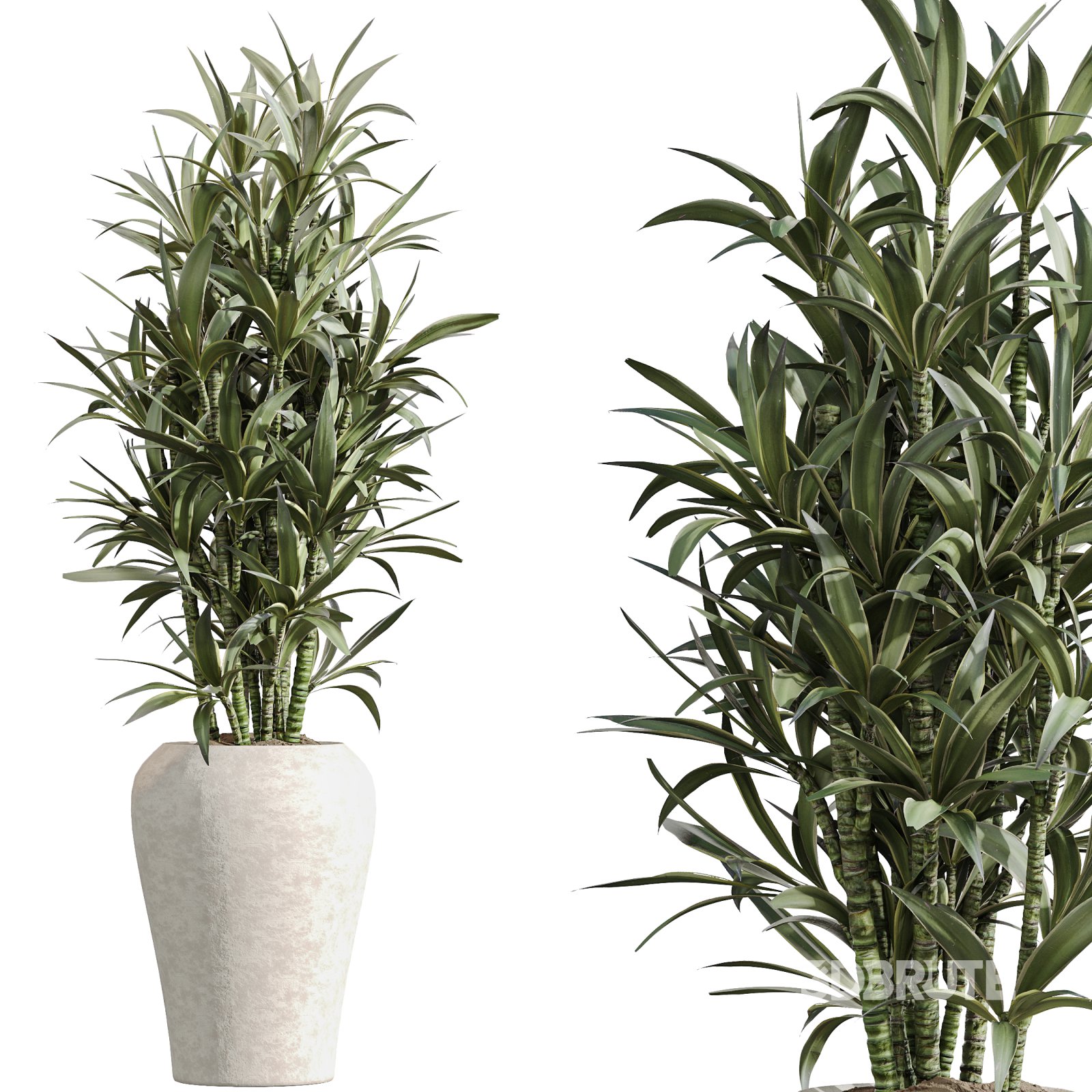A sophisticated indoor plant collection uniting Mediterranean and tropical elegance. The Ficus Elastica Beliza, native to Southeast Asia, showcases bold, leathery leaves with a rich green sheen, adding strength and volume to interiors. The Dracaena Lemon Lime Cane offers vertical rhythm through slender, variegated foliage in refreshing green tones, perfect for contemporary spaces. Completing the set, the Mission Olive introduces timeless Mediterranean charm with its silvery foliage and graceful branching. Displayed in refined ceramic pots with natural textures, these plants enrich Japandi, modern, and luxury interiors with lifelike realism and decorative sophistication. Technical specifications: Note: Elevate your architectural visualizations with this premium plant set, designed for maximum realism, balance, and decorative impact. If you have any problems for setting up the models, send me a message here. |