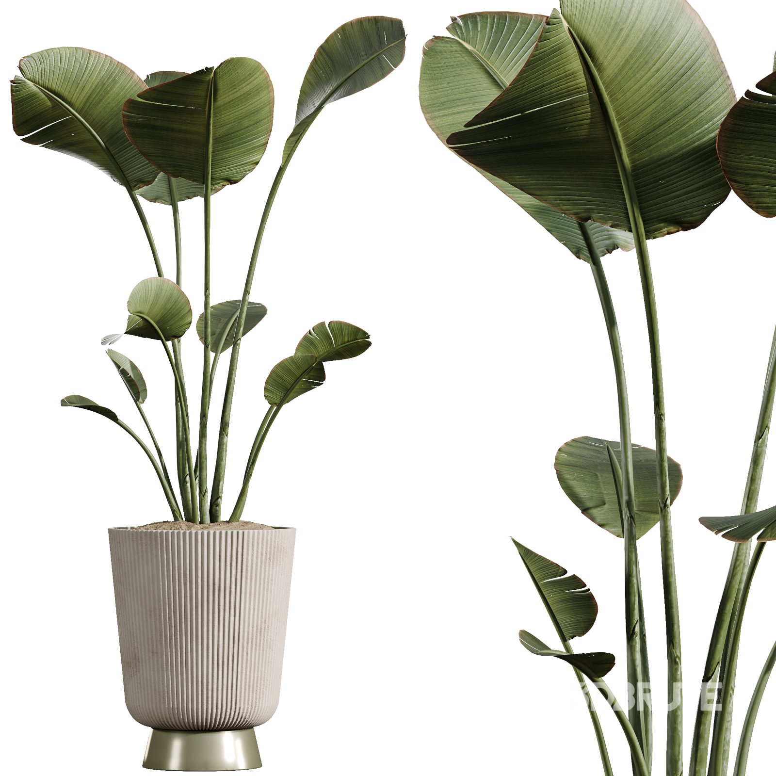 An elegant indoor plant set that unites Mediterranean charm with tropical vibrancy. The Spineless Yucca, native to Central America, features upright stems with sharp, sword-like foliage that adds architectural form to interiors. The Mission Olive tree, a classic Mediterranean species, brings silvery leaves and timeless texture that evoke calm natural beauty. Completing the set, the Ravenala Banana, often called the Traveler’s Palm, introduces dramatic, fan-like leaves that radiate bold tropical energy. Displayed in modern ribbed ceramic and concrete pots with subtle metallic accents, these plants are perfect for Japandi, contemporary, and luxury interiors, offering lifelike realism and decorative harmony. Technical specifications: Note: Bring Mediterranean elegance and tropical drama into your 3D scenes with this premium plant set, crafted for realism and decorative impact. If you have any problems for setting up the models, send me a message here. |