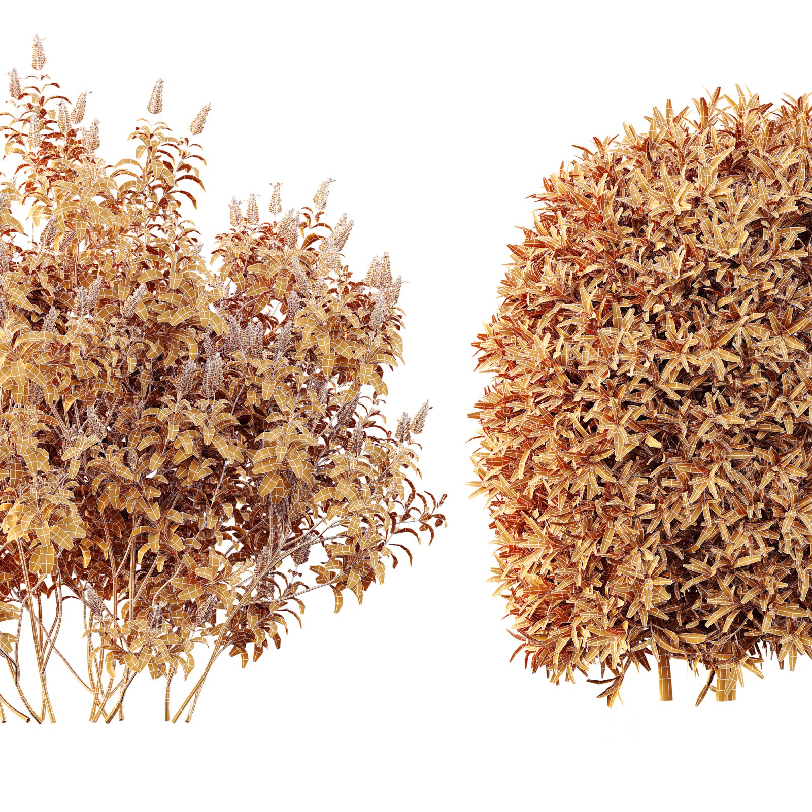 AV Spring Bushes Kapebonavista Lutea Golden Shrimp and Phillyrea Rosemarinifolia Nana This detailed 3D botanical pack showcases two unique Mediterranean shrubs: the **Kapebonavista Lutea**, also known as the Golden Shrimp Plant, admired for its vibrant yellow blooms and graceful, upright branches; and the **Phillyrea Rosemarinifolia Nana**, a compact evergreen with rosemary-like foliage prized in formal and naturalistic landscapes alike. Each plant model is sculpted with precision to provide unmatched realism in garden visualizations, landscape architecture, and exterior renders. Height: 75 cm, 100 cm, 105 cm, 115 cm, 125 cm, 150 cm 1- Materials is archive (material library) 2-Polys: 871134 + Verts: 1485144 3- 4K texture + 4K material 4- JPEG (texture), MAX + MTL + OBJ + FBX 2014 5- 3dmodels: MAX + OBJ + FBX 2014 6- Corona render + Vray render (Renderer Engine-MAX + FBX) 7- Models have unwrapped overlapping and maps supported traditional 3ds Max texturing. Note: This collection brings Mediterranean vibrance and professional-grade realism to your render scenes. A perfect asset for high-end design projects. If you have any problems for setting up the models, send me a message here. |