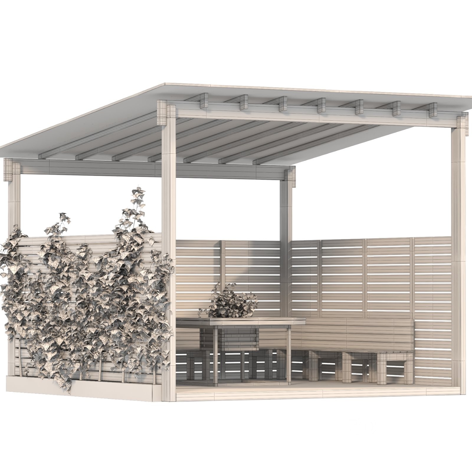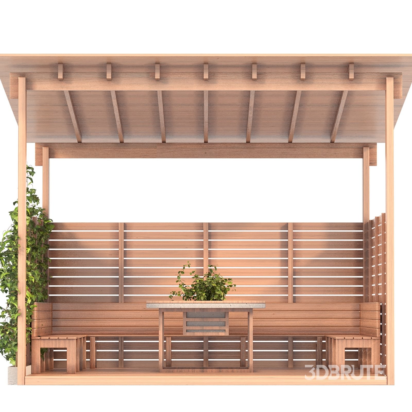 Product Name: Backyard Gazebo Technical Details: 3ds Max version: 2018 Render engines: V-Ray 6 / Corona 12 Formats: .FBX / .OBJ Polygons: 356,733 Vertices: 398,863 Dimensions: 499 × 485 × 363 cm Main material: Wood Units: Centimeters Textures: Included Description: Backyard Gazebo – Wooden Outdoor Pavilion with Greenery A high-quality 3D model of a modern wooden gazebo designed for backyard and garden spaces. The structure features clean architectural lines, open sides, and natural wood textures that create a warm and inviting outdoor environment. This gazebo includes a comfortable sitting area with integrated benches and a central wooden table, perfect for outdoor gatherings, dining, or relaxation. The design also incorporates a climbing plant wall that adds a natural, organic touch and enhances the cozy atmosphere. Materials are precisely configured for both V-Ray and Corona render engines, ensuring realistic lighting, soft wood reflections, and accurate color tones under various lighting conditions. The model is optimized for easy integration into landscape scenes, architectural visualizations, or garden design projects. Ideal for exterior renders, real estate visualizations, or outdoor furniture scenes. |