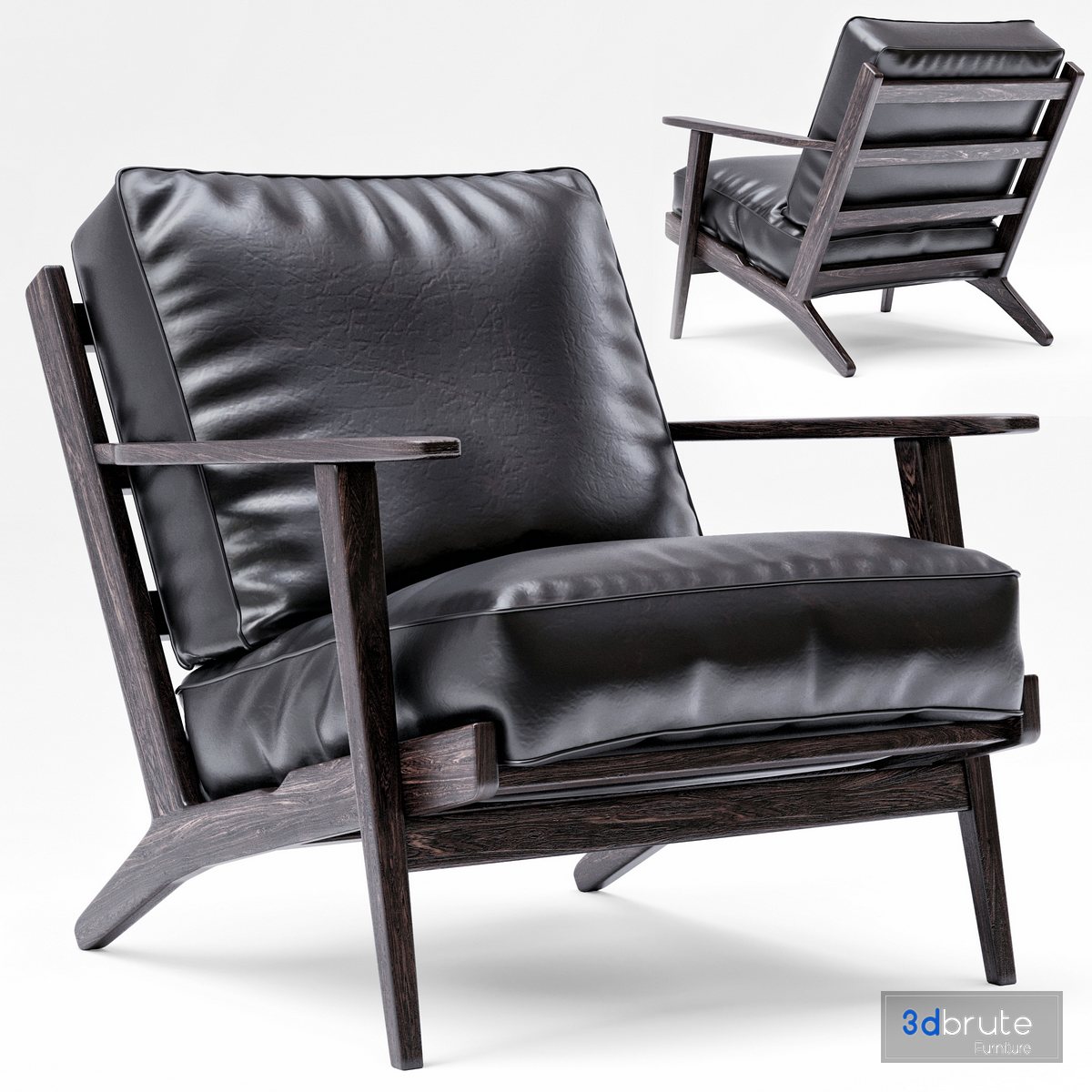 Description: polys = 369.720 2 wood and leather material https://www.chairish.com/product/1951706/baxter-black-lounge-chair |