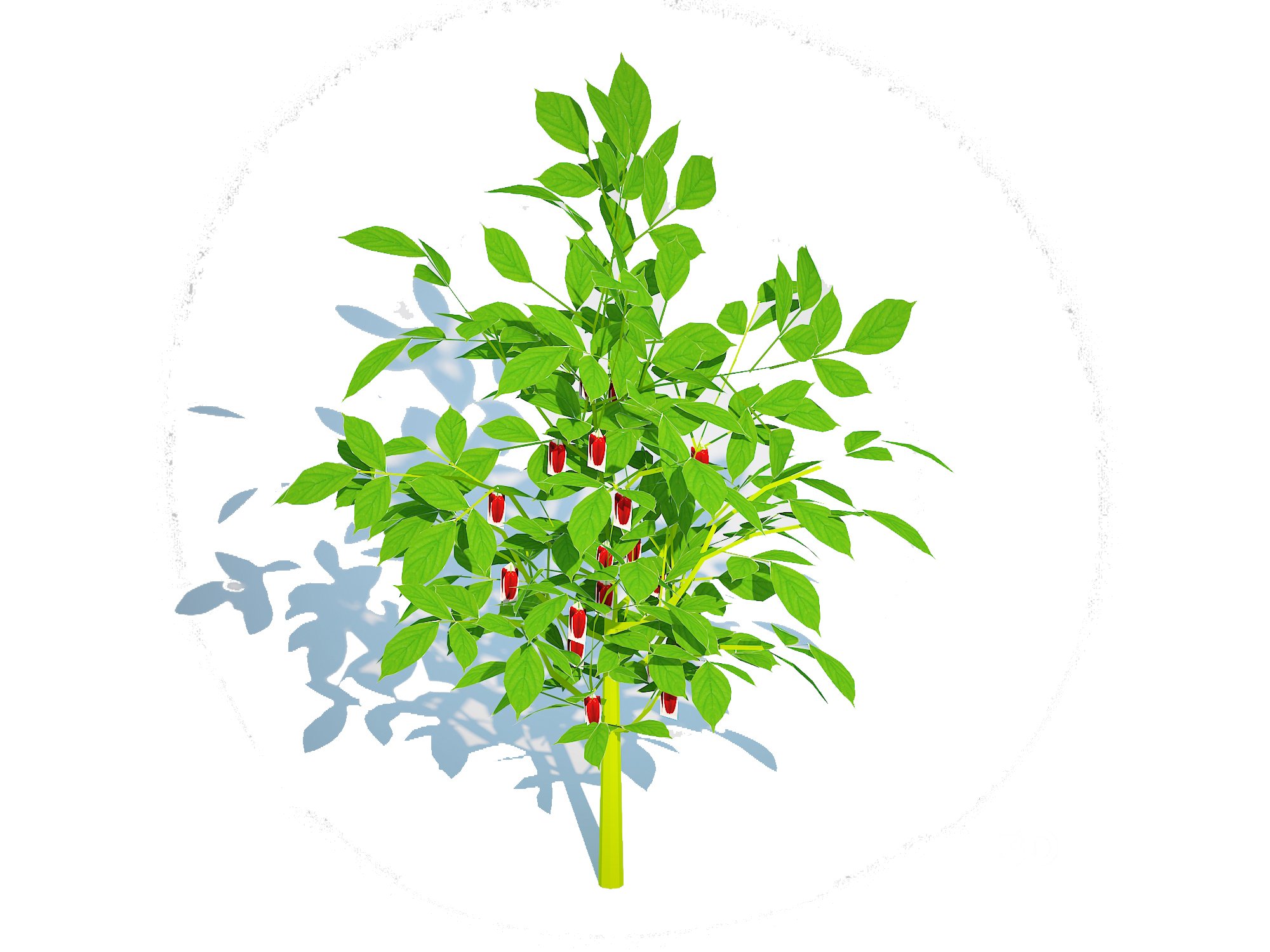Bell Pepper-red plant low poly 3d model ready for Virtual Reality (VR), Augmented Reality (AR), games and other real-time apps. **Plant Name**: Bell Pepper-red **Botanical Name**: Capsicum annuum **Common Name/s**: Red Capsicum, Sweet Pepper, Red Pepper, Bell Pepper, Bell Capsicum, Red Sweet Pepper. **Model info**: **Plant Description**: Our Sketchup 3D model of plant series will be helpful for Botanical study, Research on plants, Nature study, Architectural design, Urban Design, Landscape design, Gardening, Lawn design, Backyard design, Home addition project. |