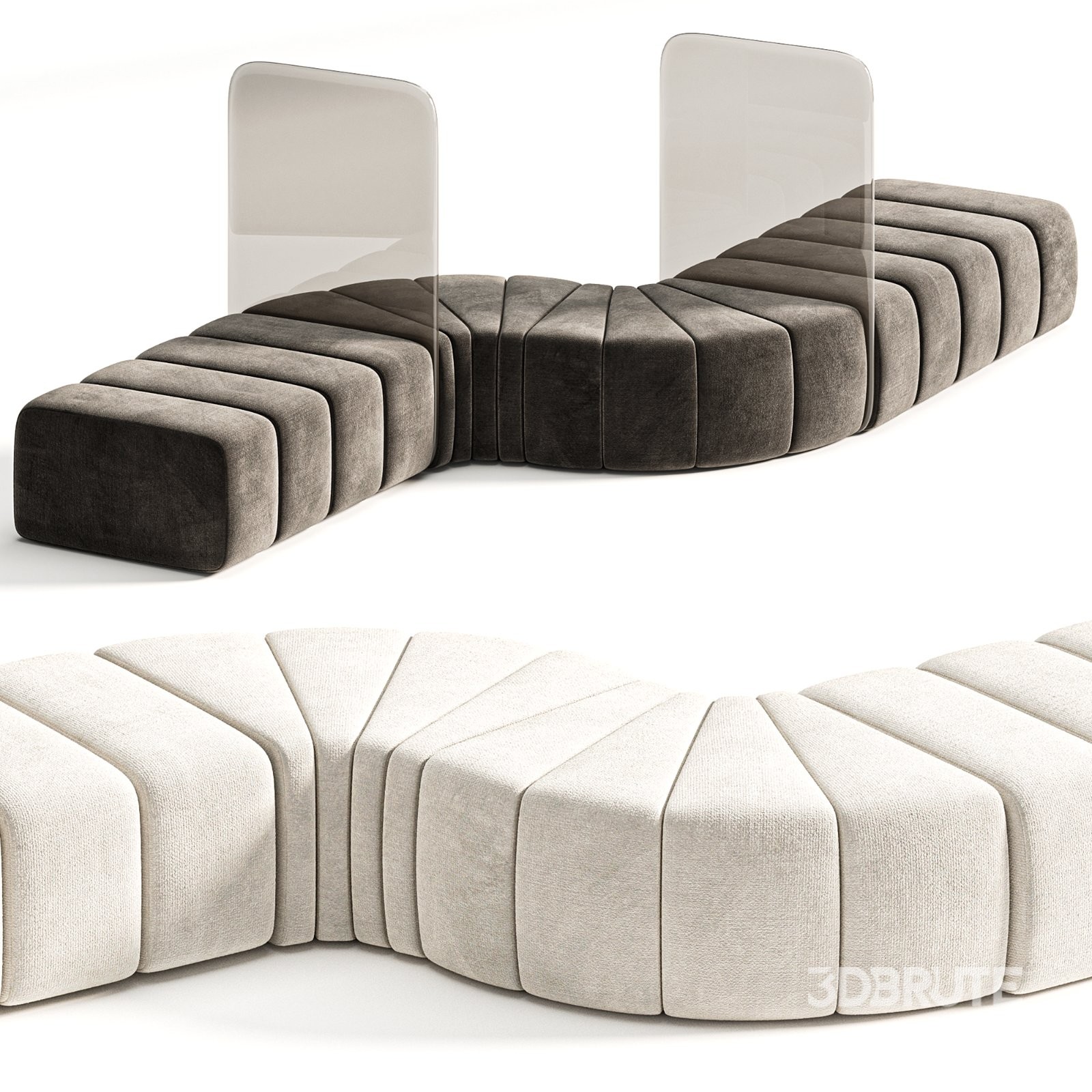 Bla Station Bob Curved Module Pouf with Plexiglass Divider |
