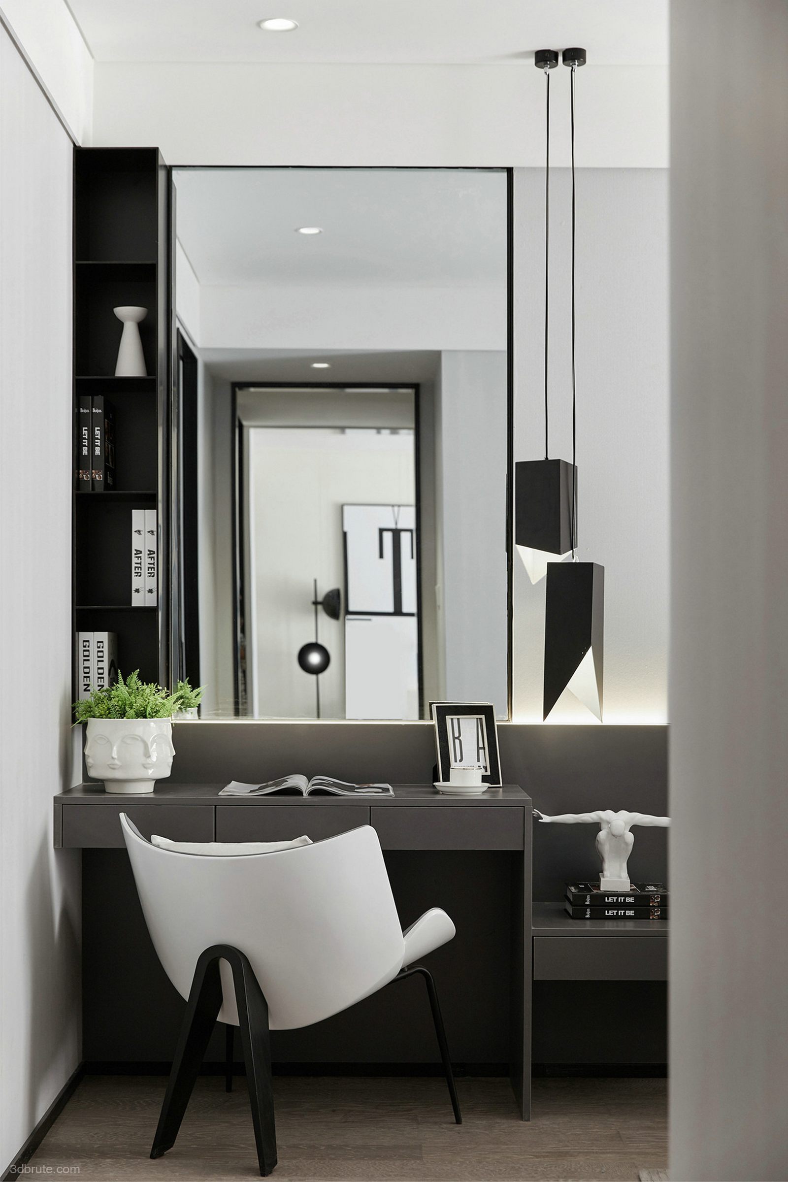 Black and white interpretation of minimalist life of the art of life nine degrees of space design