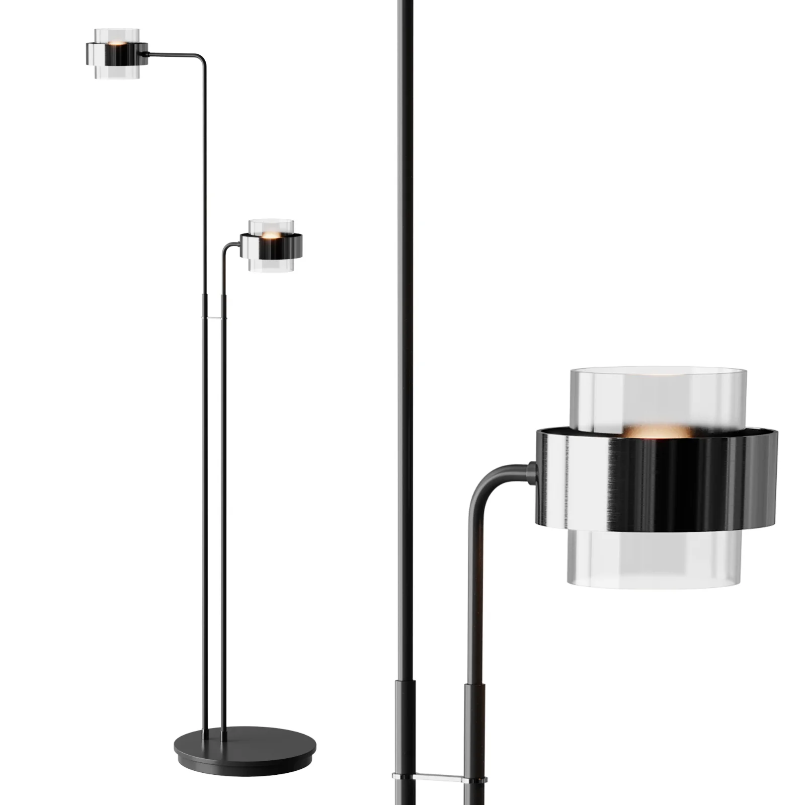 High quality 3D model of the Botello Lamp featuring a sleek contemporary floor lamp design with cylindrical glass shades and contrasting metal accents. The minimalist structure combined with warm ambient lighting makes this lamp ideal for modern and elegant interiors. Perfect for interior visualization, architectural renders, and professional lighting design projects. The model is accurately scaled to real-world dimensions, with clean geometry and optimized topology, ready for production use. Fully compatible with Corona Renderer and V-Ray, suitable for living rooms, lounges, bedrooms, and modern residential or commercial spaces.