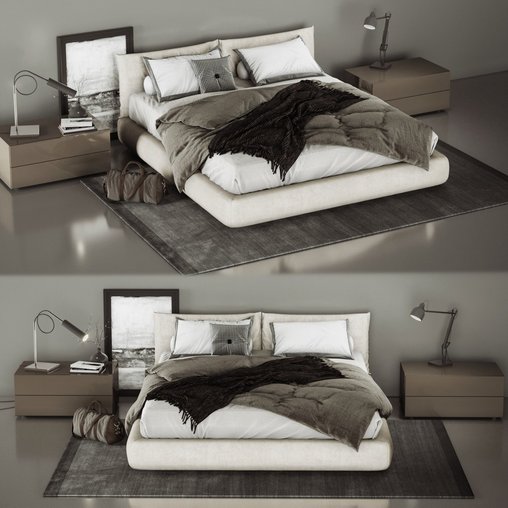 Bed 3d model headboard and mattress modern download free