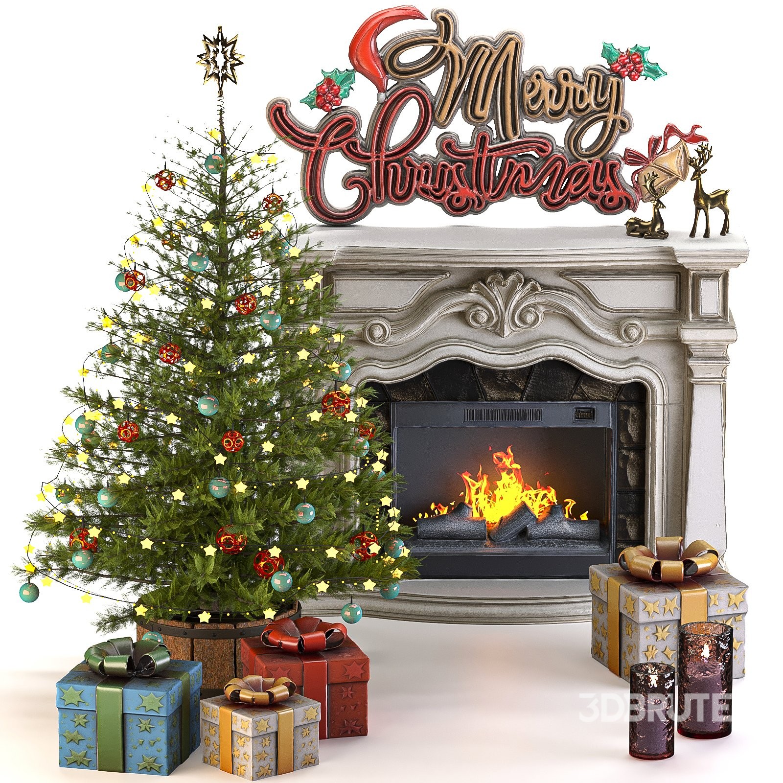 Product Name Christmas Set Technical Details Modeling Software: 3ds Max 2018 Render Engines: V-Ray 6 / Corona 12 Export Formats: FBX / OBJ Polygons: 604,014 Vertices: 684,010 Combined Dimensions: 192 × 181 cm Height: 168 cm Main Materials: Organic, wood, metal, fabric, glass Textures: Included Units: Centimeters Ready for photorealistic renders Description The Christmas Set is a warm and festive 3D composition designed to bring the joyful spirit of the holiday season into any interior scene. The model features a beautifully decorated Christmas tree with realistic ornaments and lights, a detailed classical fireplace with dynamic fire, and several wrapped gift boxes in various sizes and materials. Every detail—from the glossy baubles to the shimmering ribbons and metallic candle holders—is carefully modeled and textured to achieve maximum realism. The "Merry Christmas" sign on top of the fireplace adds a lively and cheerful touch, making the entire scene perfect for cozy home renders, product visualizations, or festive advertising campaigns. This set is ideal for holiday-themed interiors, living room renders, and seasonal decoration projects. It's optimized for V-Ray and Corona Renderer, offering a well-balanced setup between performance and quality for both close-up and wide shots. |