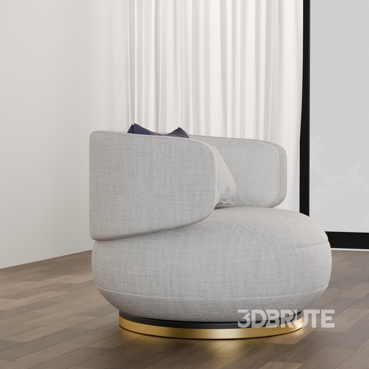 A soft and stylish round lounge chair designed for cozy interiors. This 3D model features smooth fabric upholstery, rounded arms, and accent cushions for added comfort and detail. Perfect for modern or minimalist living rooms, reading corners, or waiting areas. Features: Clean, optimized geometry for quick rendering Realistic fabric and cushion detailing Ideal for use in interior scenes and architectural visualizations Compatible with major 3D software Real-world scale and correct proportions |