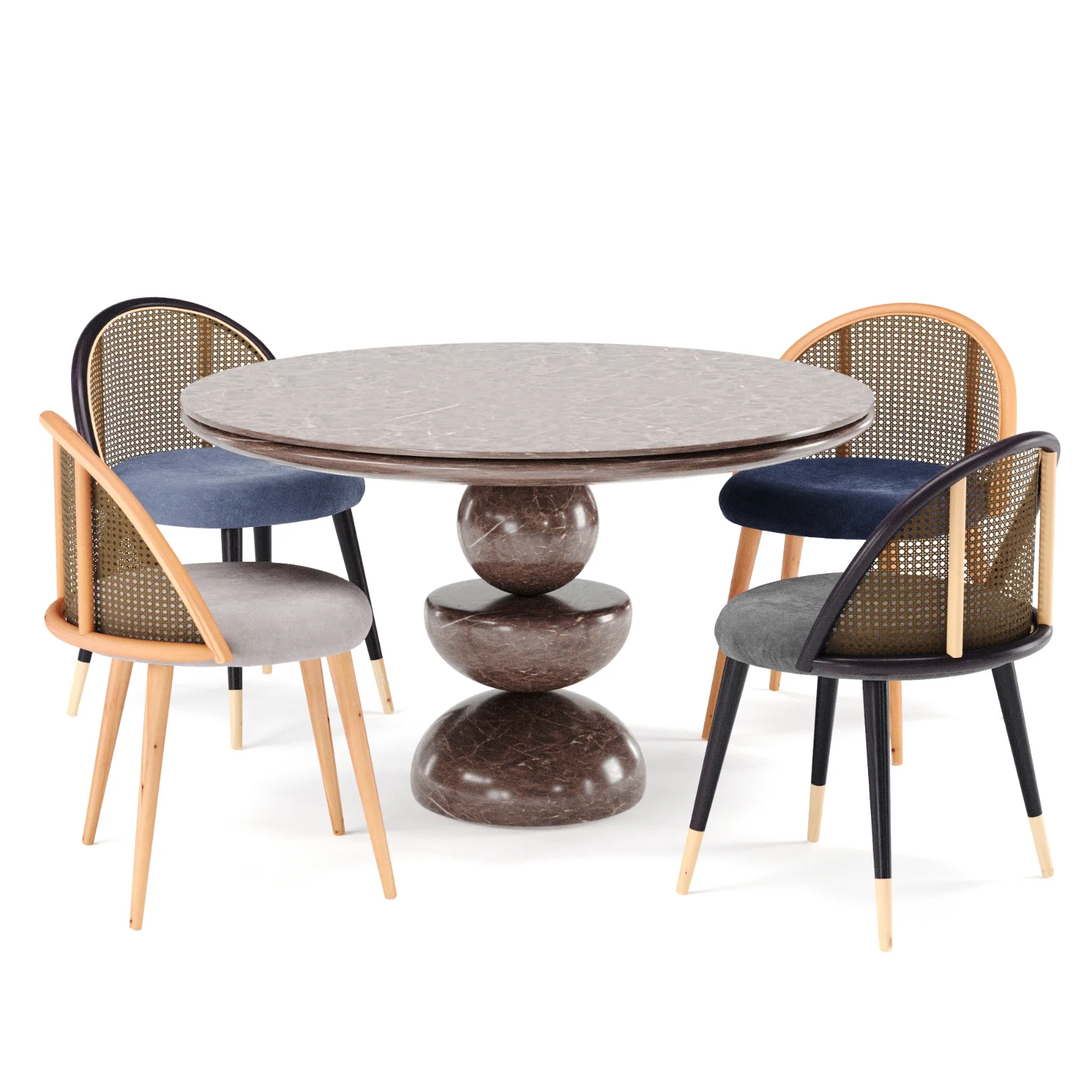 12 matrials velvet Chair. 3 matrial Marble Table. Polys: 206.776 |