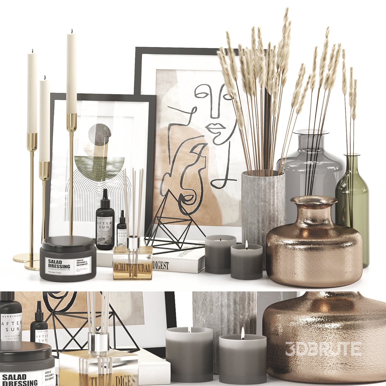 Decorative Set 003 - This model is a collection of modern decors designed for the interior. |