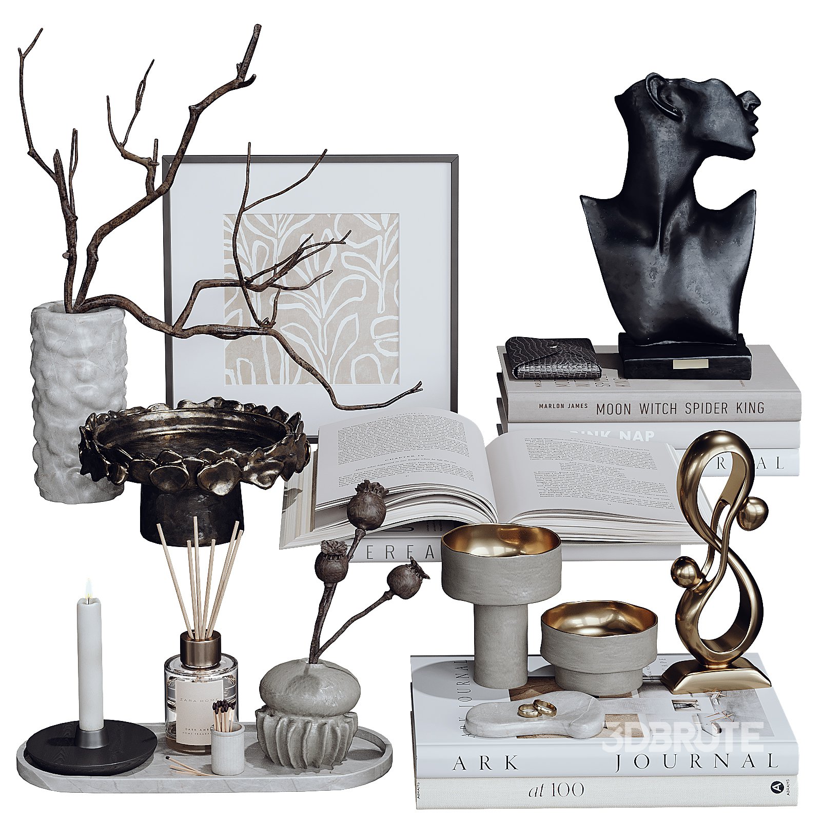 Corona 9 version Materials CoronaLegacy Mtl + Vray In versions of CoronaRender 9 and below CoronaLegacyMtl=CoronaMtl 3dsMax 2016 + OBJ Polys: 450006 High Quality models Detailed enough for close up renders vase, scandinavian, plant, decor, light, books, candle, sculpture |