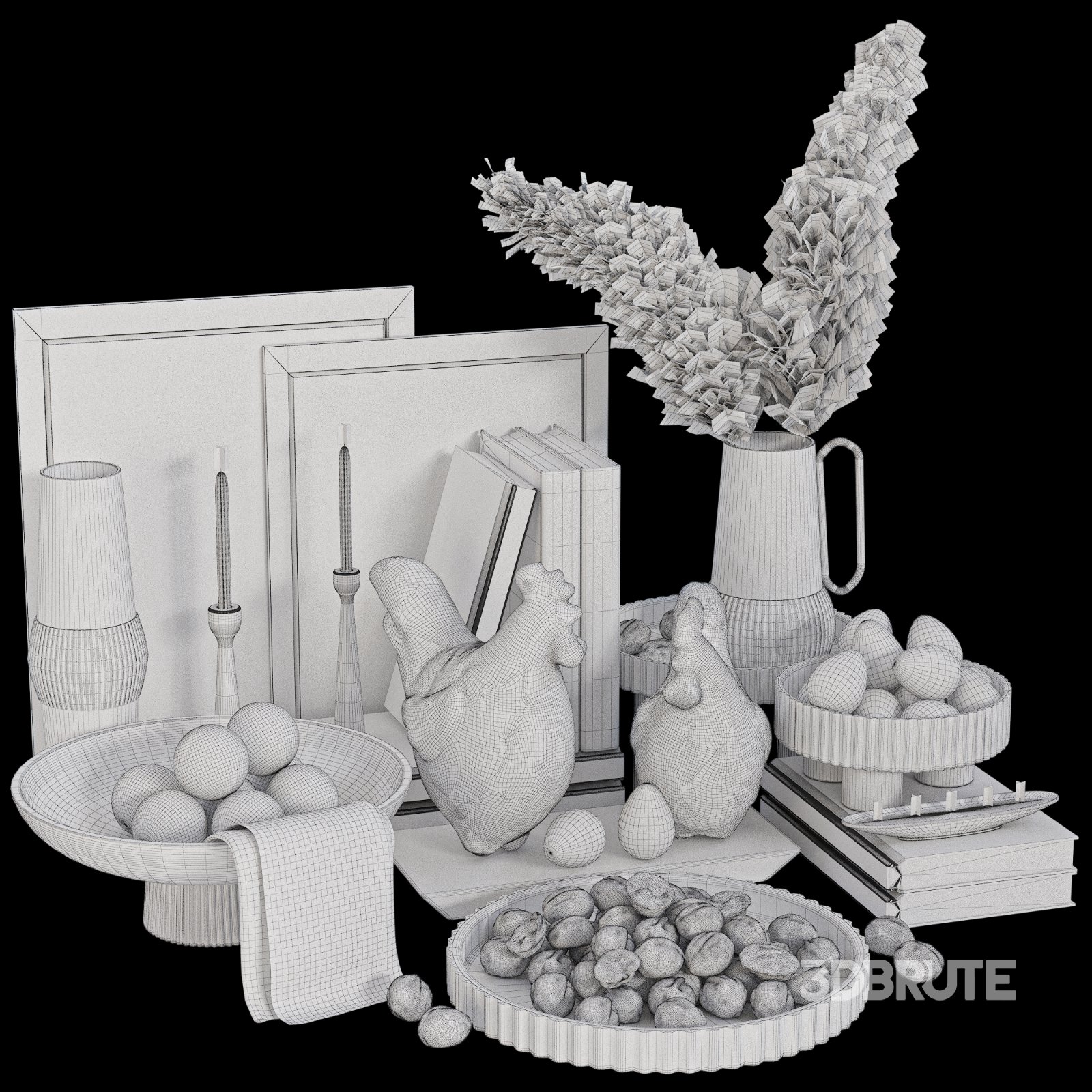 Decorative Set with Walnuts and Pampas |