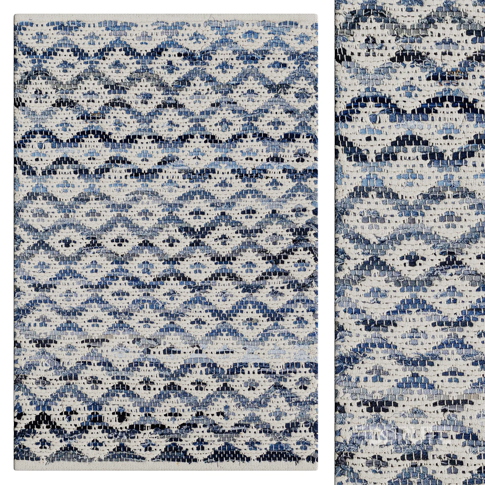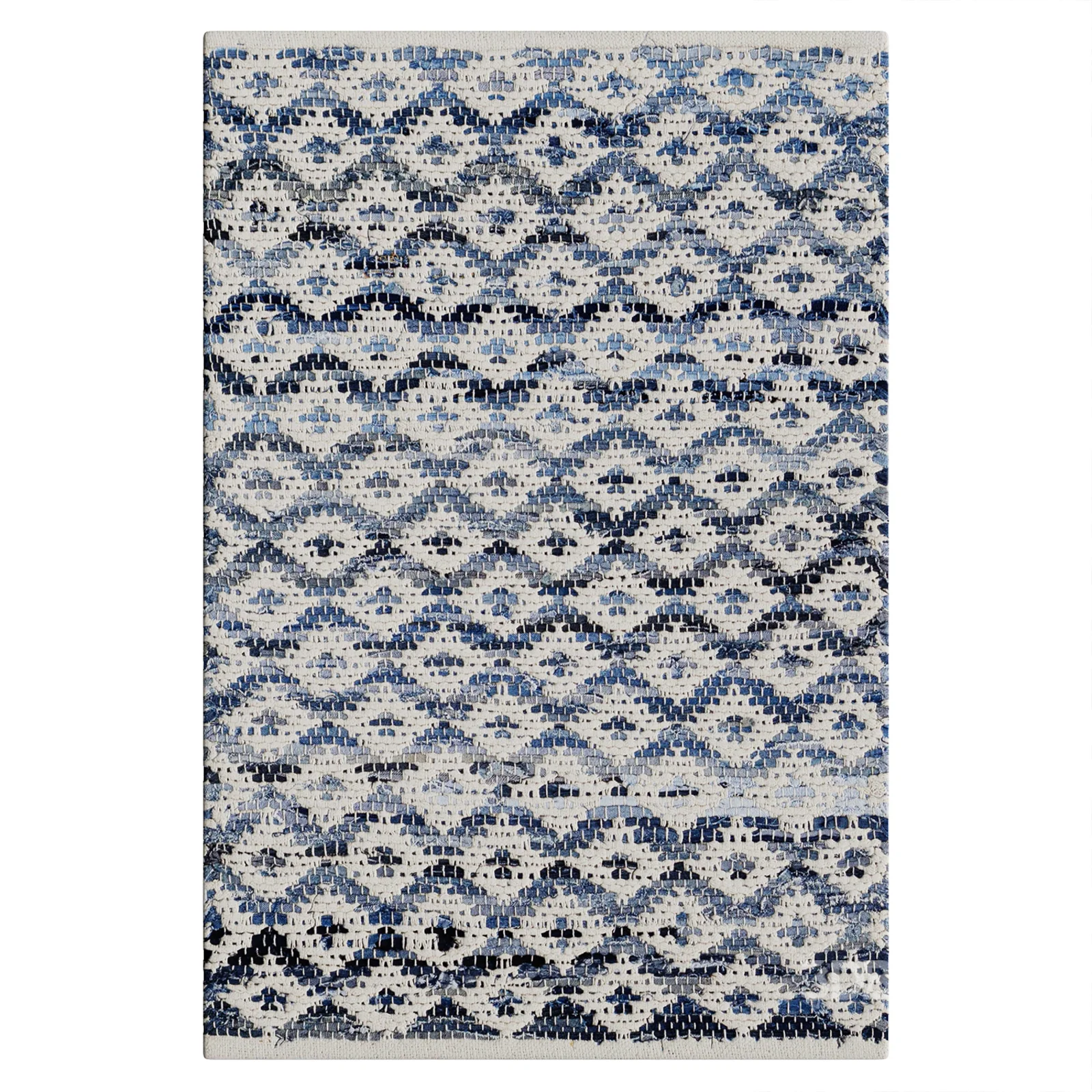 Denim Rag Diamond Ivory Handwoven Cotton Rug |