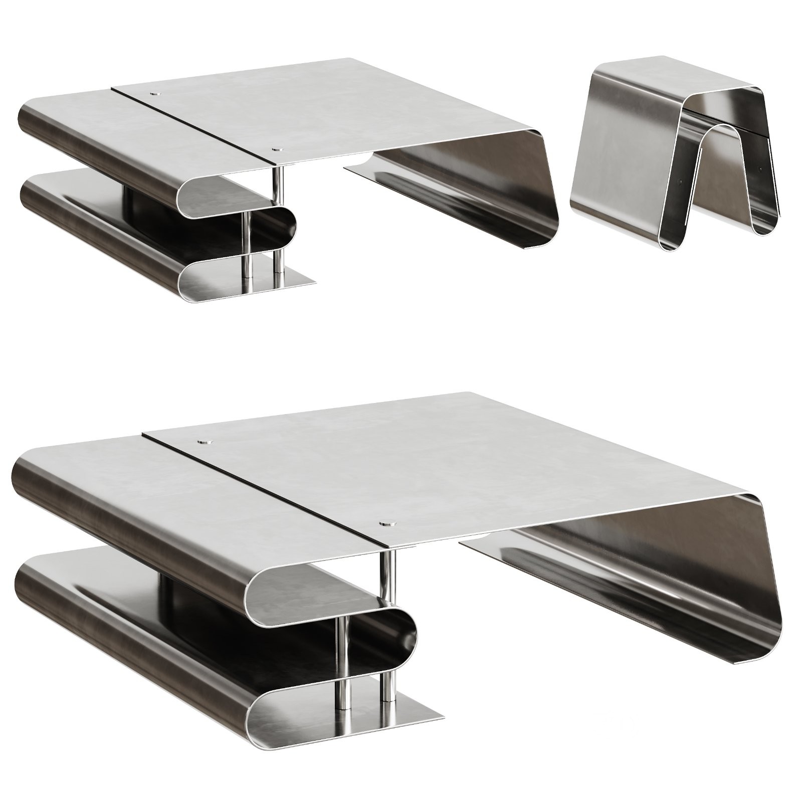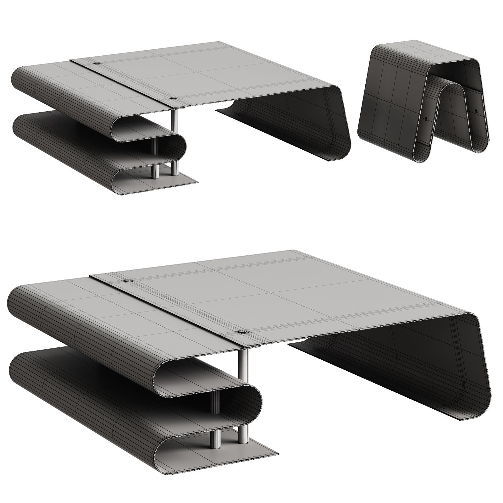 Description: This 3D model set recreates the elegant Dune collection of tables and coffee tables, showcasing fluid sculptural forms and refined asymmetry. The model features smooth organic silhouettes, precise edge detailing, and harmonious proportions that reflect the contemporary luxury aesthetic of the original Baxter design. Ideal for high-end interior visualizations, the set includes multiple table variations with carefully crafted surfaces and realistic material properties suitable for close-up renders.