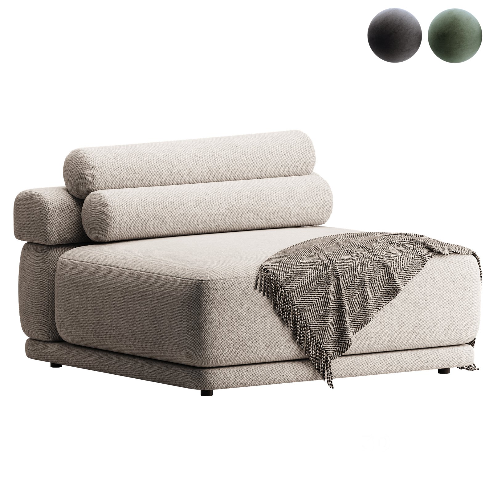 Name: Etna Description: Tags: lounge chair, modern chair, soft seating, Etna chair, cylindrical cushions, Corona Renderer, upholstered chair, 3ds Max model, FBX furniture, OBJ export, minimalist chair, sculptural furniture, interior design model, 3D chair asset, contemporary seating, fabric lounge chair, neutral color furniture, photorealistic model, modern interior furniture, visualization ready model |
