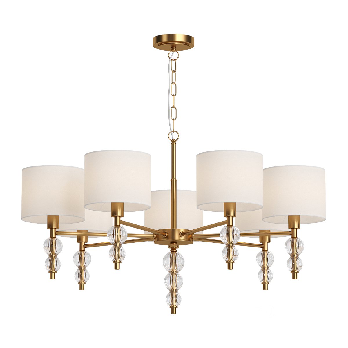 Luxury Gold Chandelier with Glass Ornaments 3d Model Enhance your interior designs with this elegant gold chandelier featuring six fabric lampshades and crystal-clear glass ornaments. Designed with a sophisticated blend of modern and classic aesthetics, this high-quality 3D model is ideal for architectural visualizations, interior design projects, and realistic renderings. |