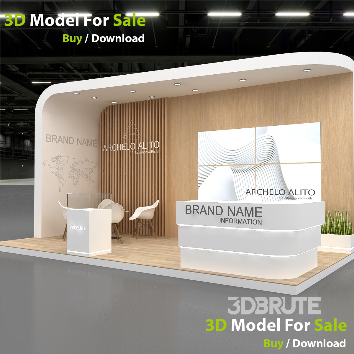 booth exhibition stand stall This 3D Project Ready For Render Units: Centimeter 3D Model Exhibition Fully applicable with correct Size and scale include design all necessary area in Exhibition and Booth Such as Vip and Storage and Counters and also Stand for productsFormat: 3DsMax (all version from 2016) Engine of Render: Vray the Modeling in Accurate you can also use this Model and change the sizes Includes Materials and textures and furnitures This model is ready for rendering just Import and use if you need any help please send me message I immidiatly answer to you ****please attention all the materials and texture can be change to your own taste and antive file is 3Dsmax Vray*** 3d-booth, 3dexhibition, booth, Exhibition, boothdesign, boothdesign-exhibition, exhibition-booth, exhibition-design, exhibition-stand, exhibitionstand, exhibitionstanddesign, event, fair, feiracomercial, hall, stall, stalldesign, stand, tradeshow, expo, event, display |