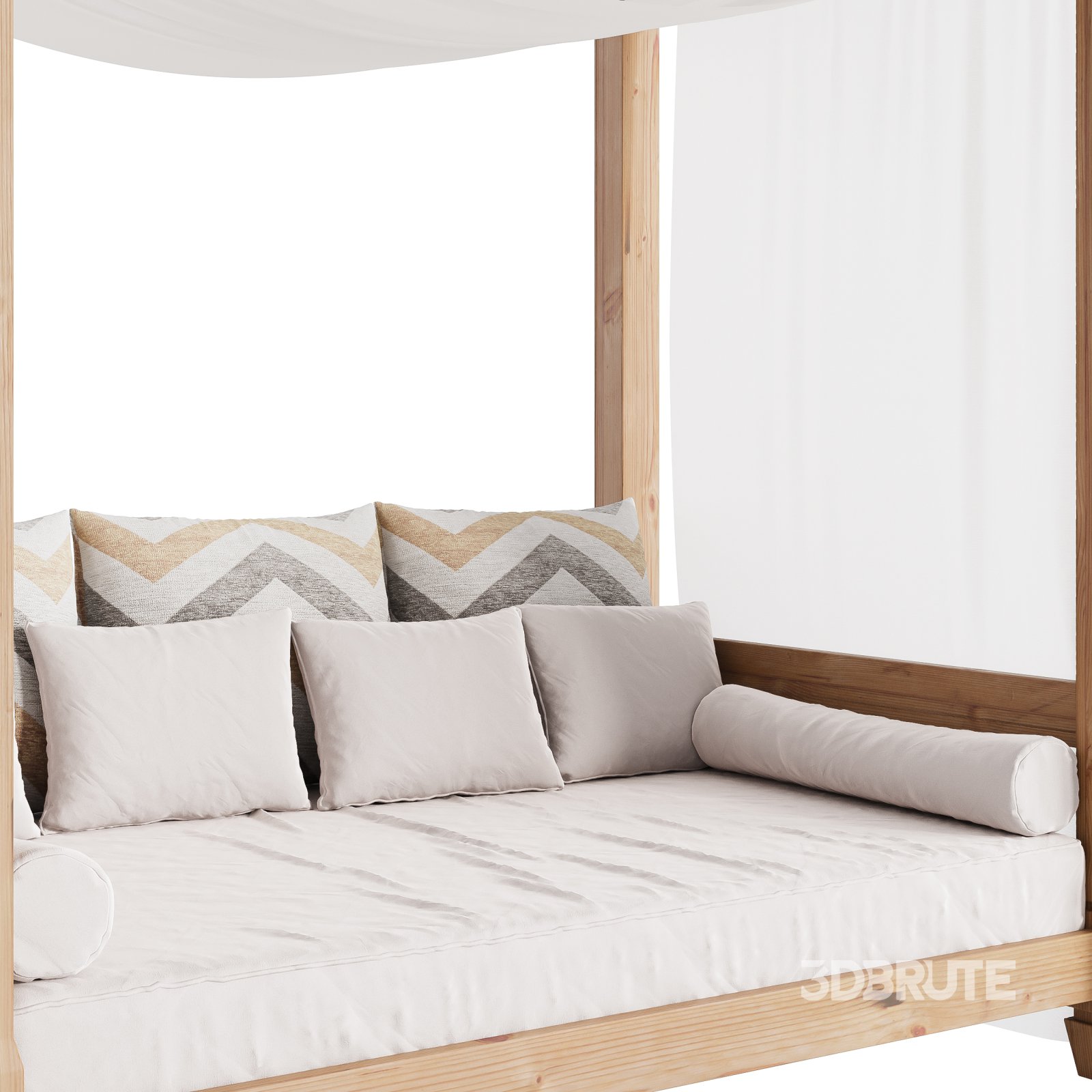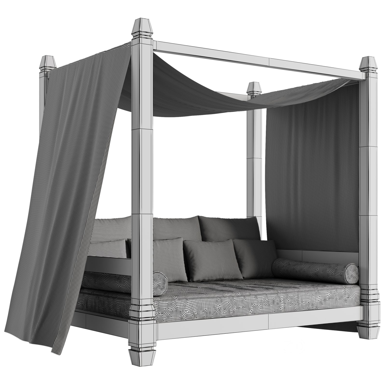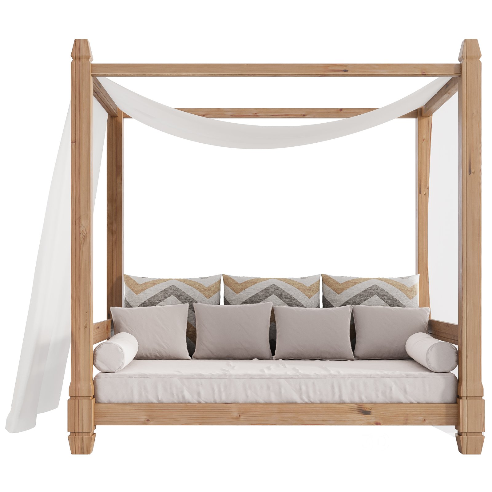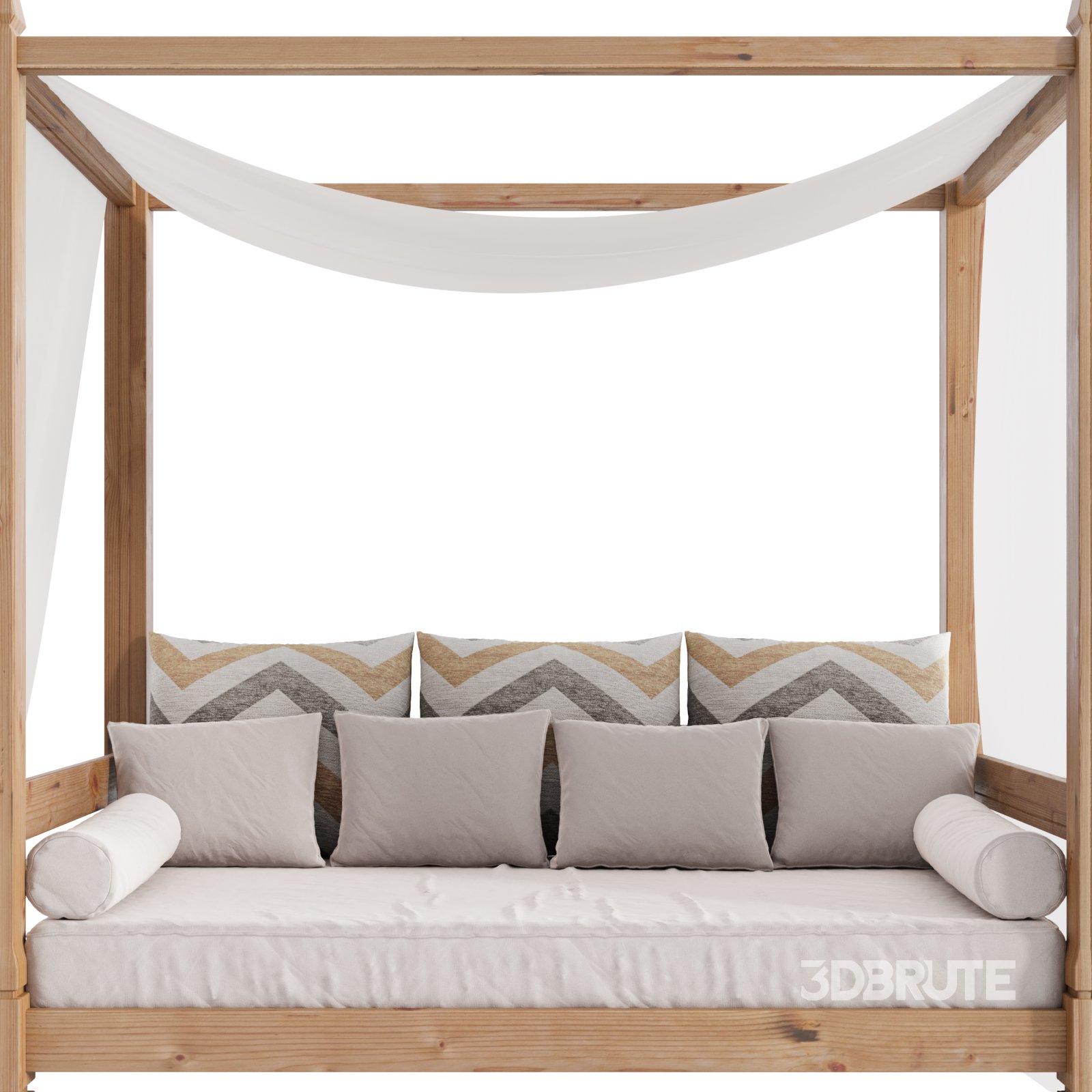 Name: Garden Lounge Structure 04 Tags: garden furniture, outdoor lounge, canopy bed, patio design, resort bed, 3d model, corona renderer, wooden frame, beach cabana, modern gazebo, poolside seating, fbx, obj, architectural visualization, outdoor relaxation, rustic decor, mediterranean style, chevron pillows, minimal structure, spa area, natural wood |