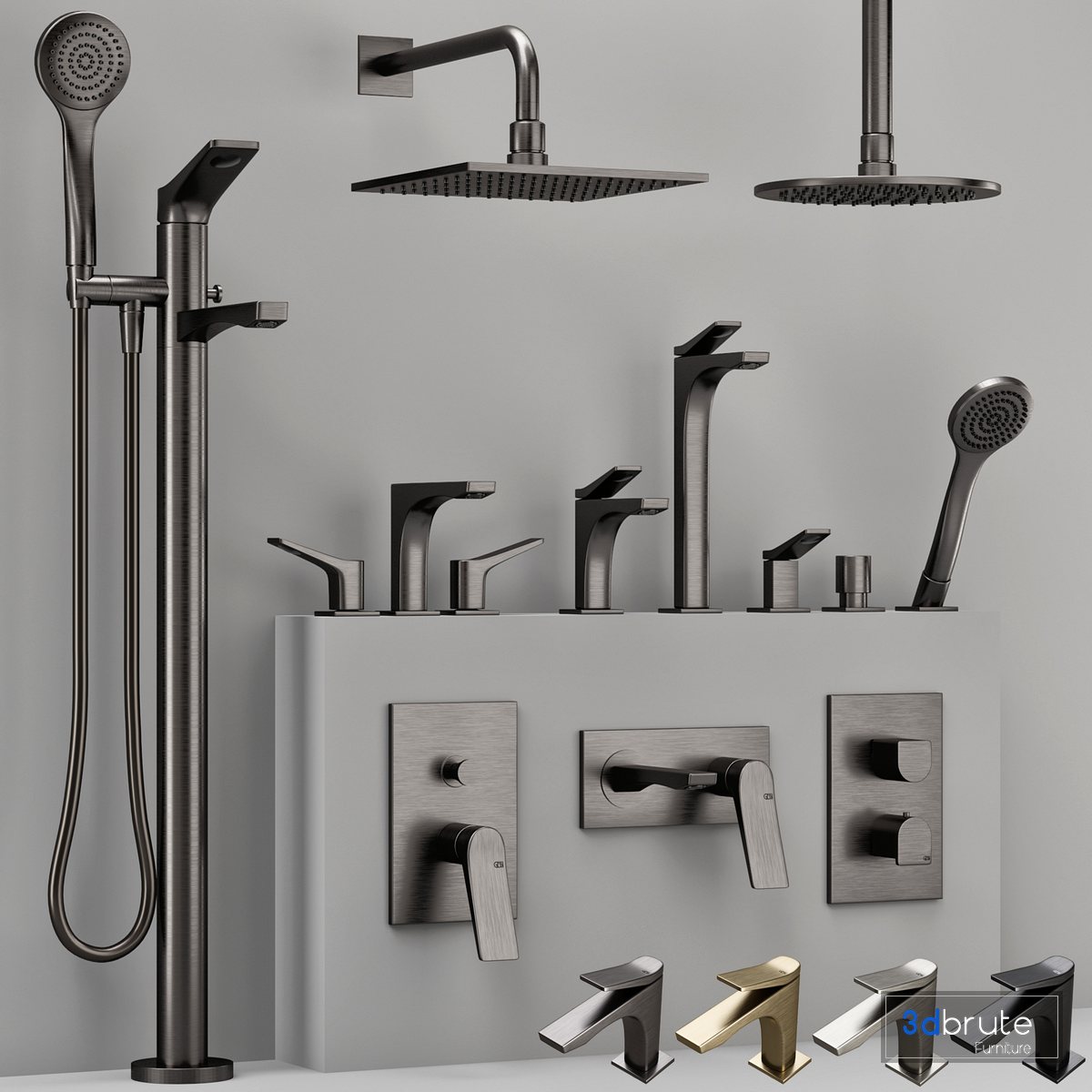 Description: Gessi RILIEVO https://www.gessi.com/en/catalogue/bathroom/2019-rilievo 4 material (707 black metal brushed PVD- 031 Chrome- 087 Brushed Gold CCP- 299 Black XL) |