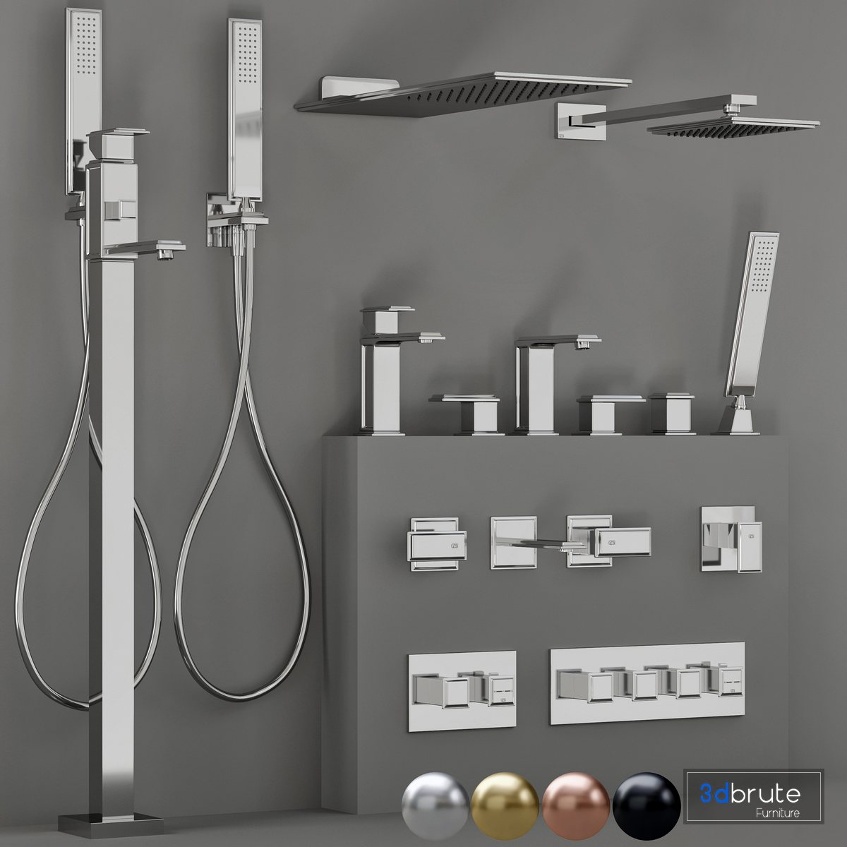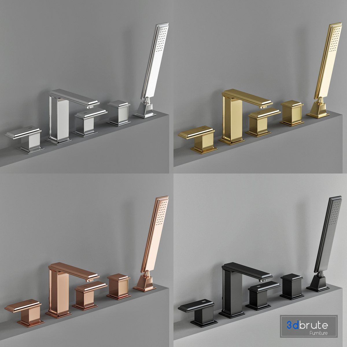 Description: Gessi Fancino faucets collection https://www.gessi.com/us/catalogue/bathroom/fascino/fascino/bath-ambience?locale=236 4 material (080 Gold CCP, 031 Chrome, 030 Copper PVD, 706 Black Metal PVD) |