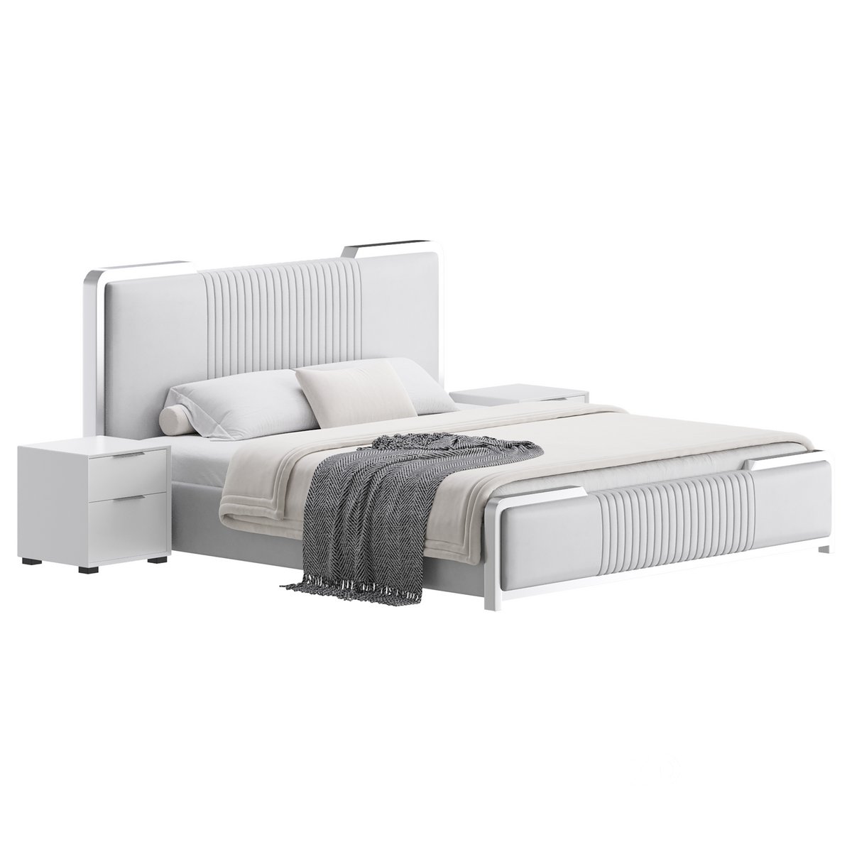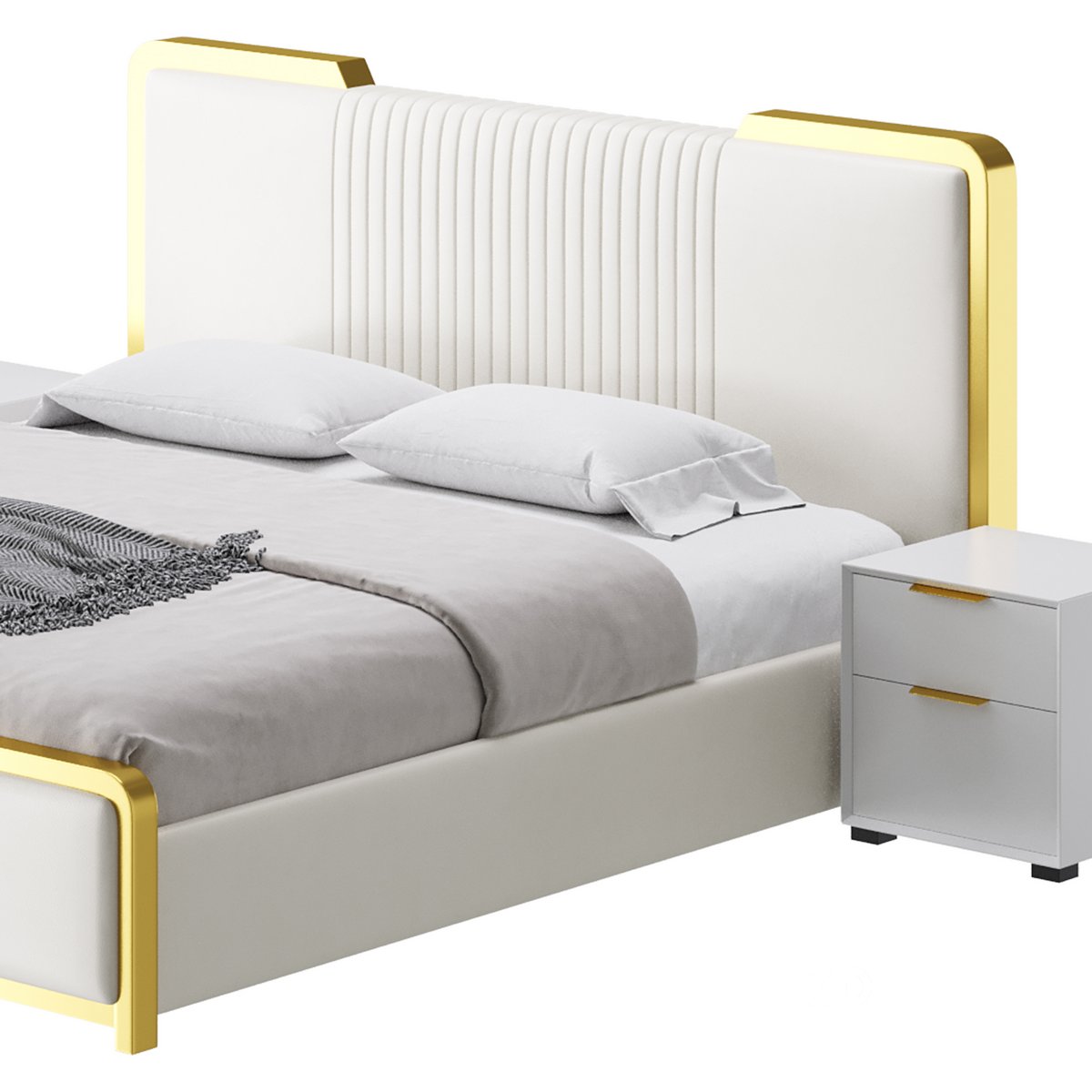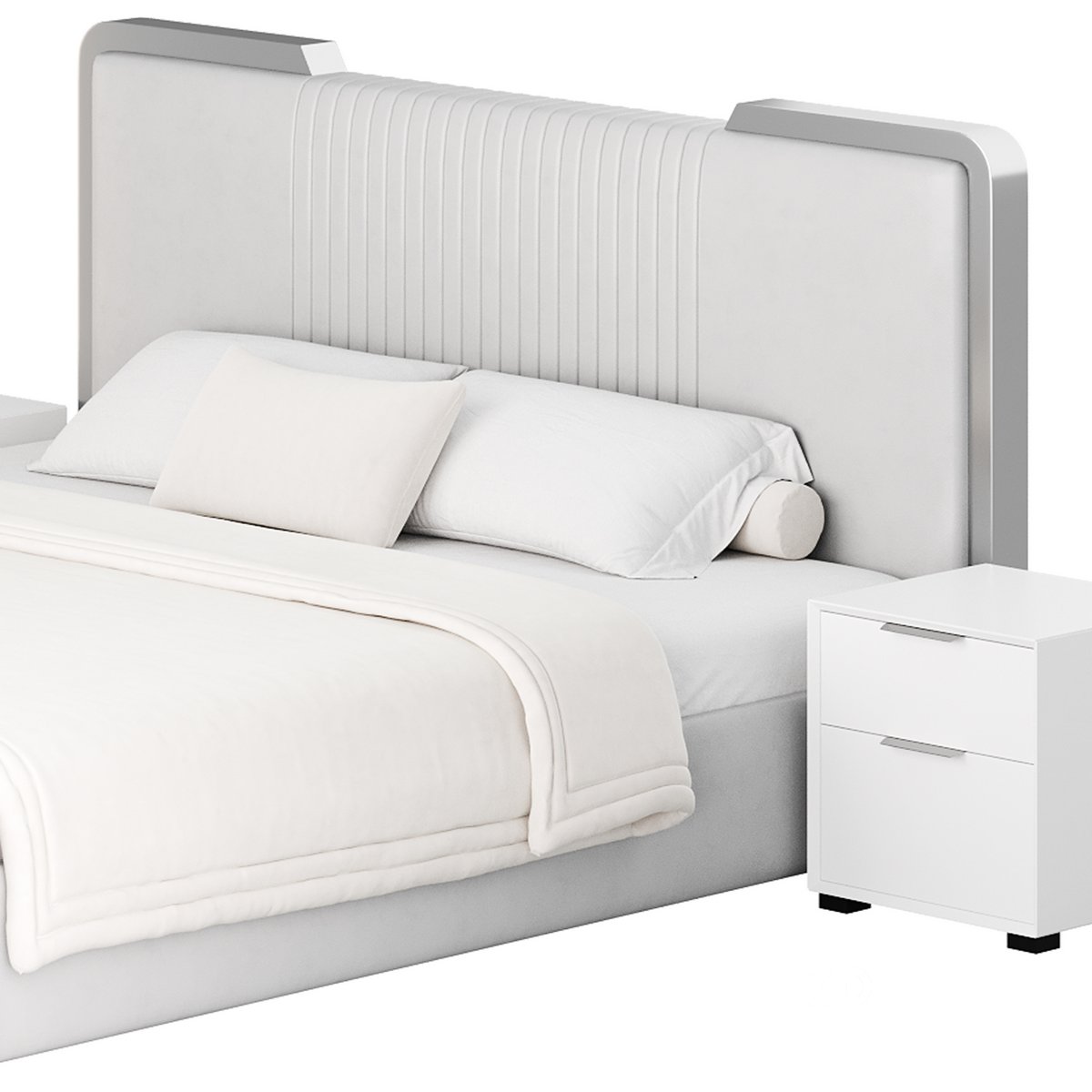 Name: Glamorous White Wood Upholstered Bed I |