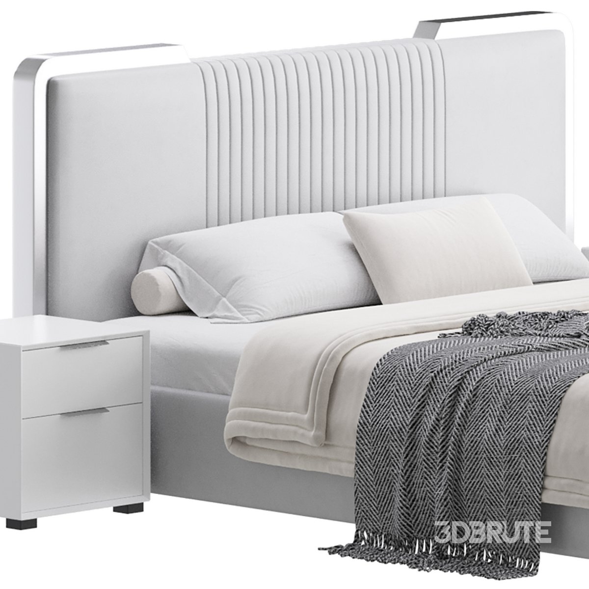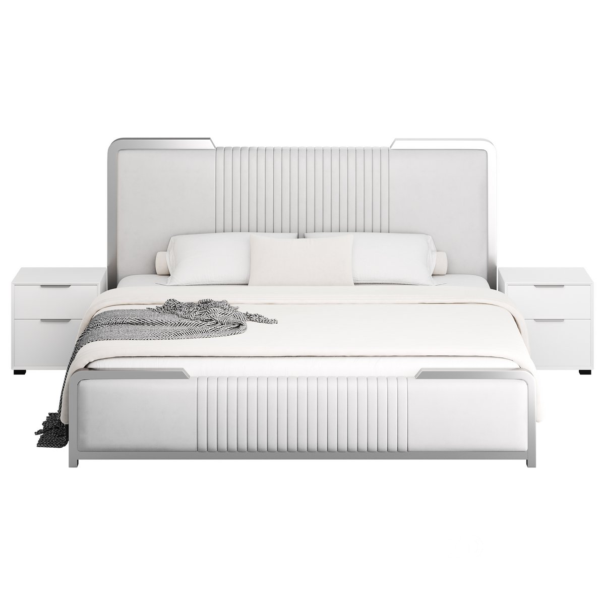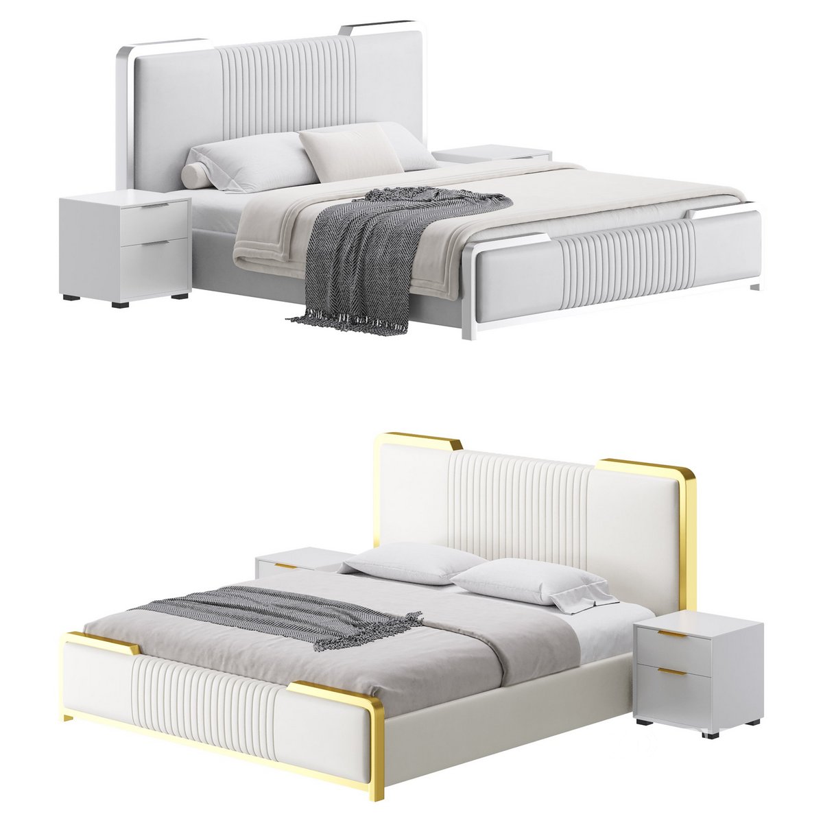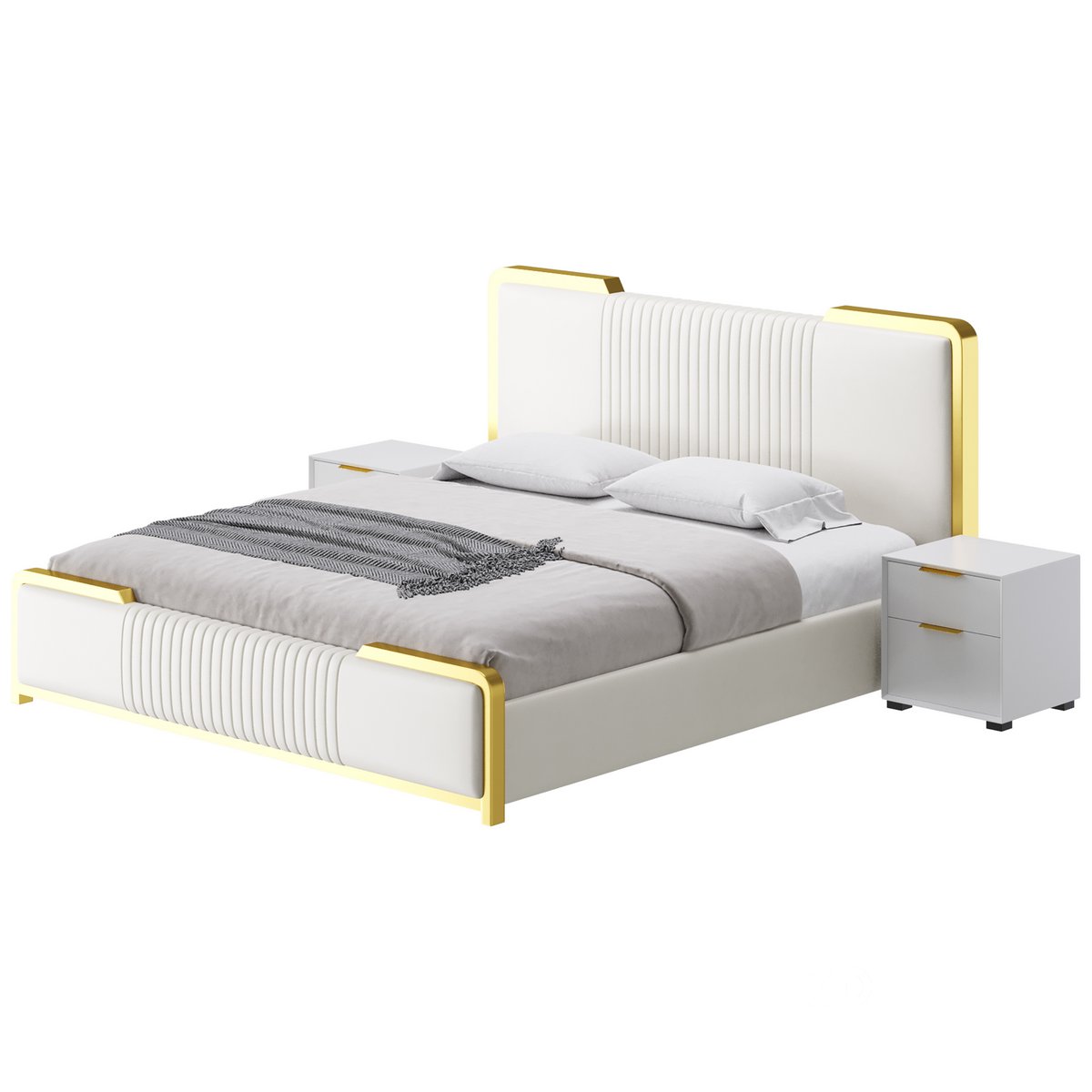 Name: Glamorous White Wood Upholstered Bed I |