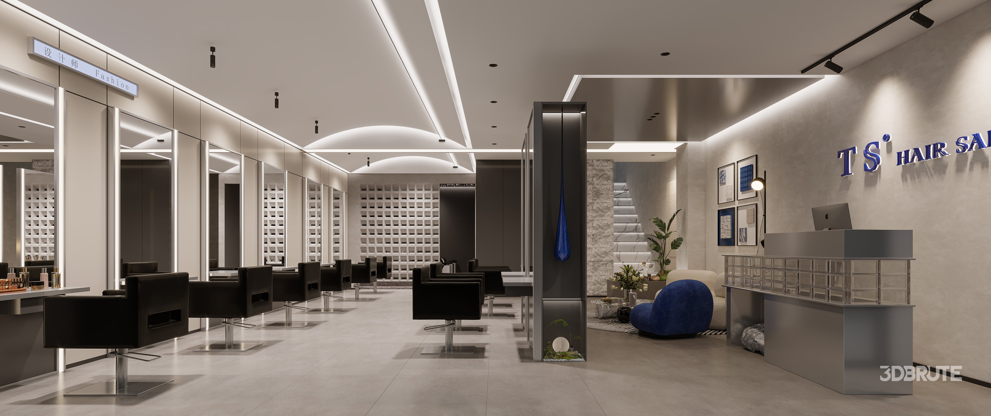 This Modern hair salon 3D scene was built in 3ds Max 2021 and rendered using Corona. It includes clean geometry, proper scene organization, and is optimized for smooth rendering performance. The model setup follows standard practices, making it easy to import and adapt into a variety of workflows. Delivered in MAX format, it is well-suited for architectural visualization, concept development, or design presentation. Dominant color tones include: White tones, Beige tones, Gray tones. |