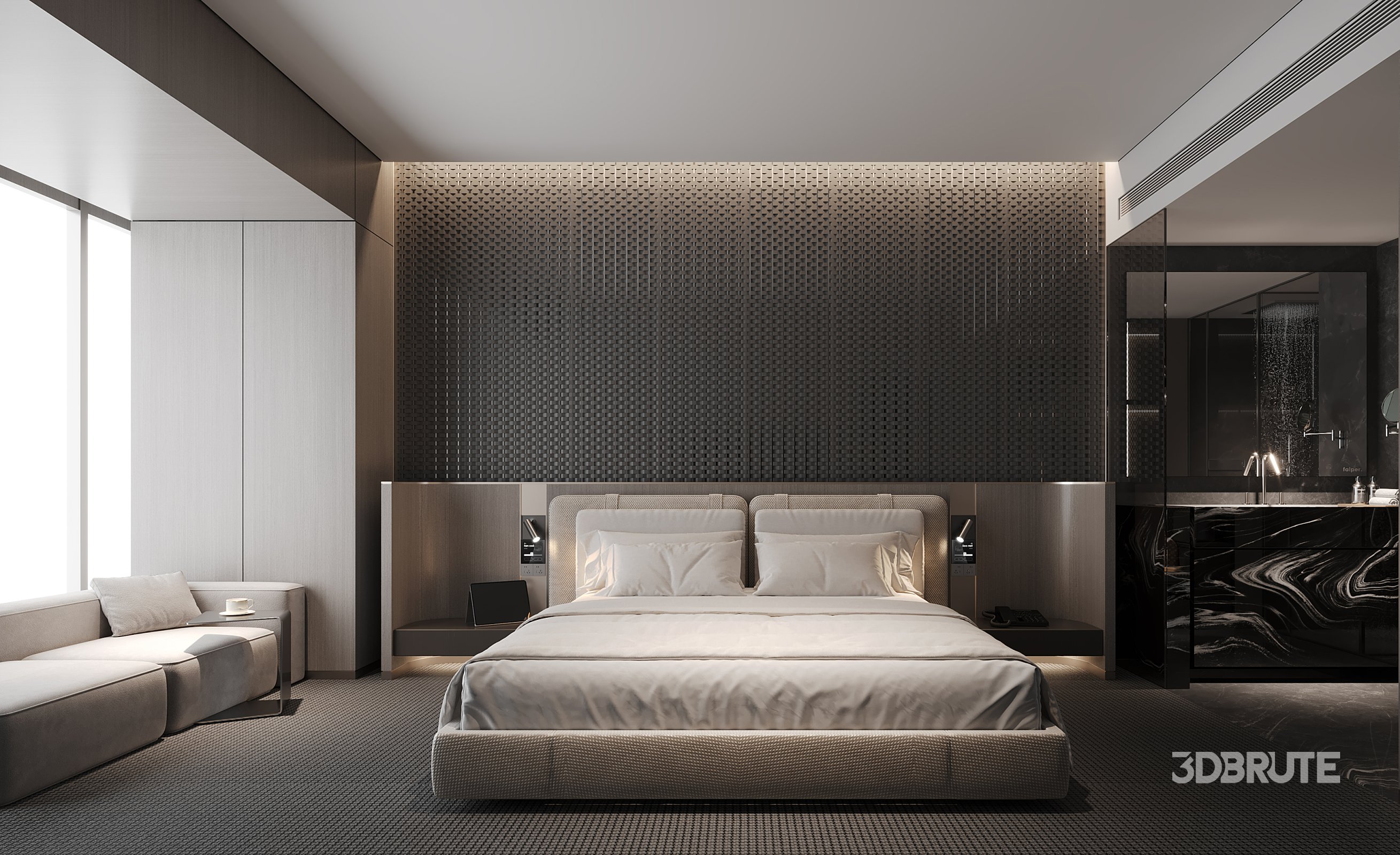 This Modern hotel rooms 3D scene was built in 3ds Max 2021 and rendered using Corona. It includes clean geometry, proper scene organization, and is optimized for smooth rendering performance. The model setup follows standard practices, making it easy to import and adapt into a variety of workflows. Delivered in MAX format, it is well-suited for architectural visualization, concept development, or design presentation. Dominant color tones include: White tones, Beige tones, Silver tones, Gray tones. |