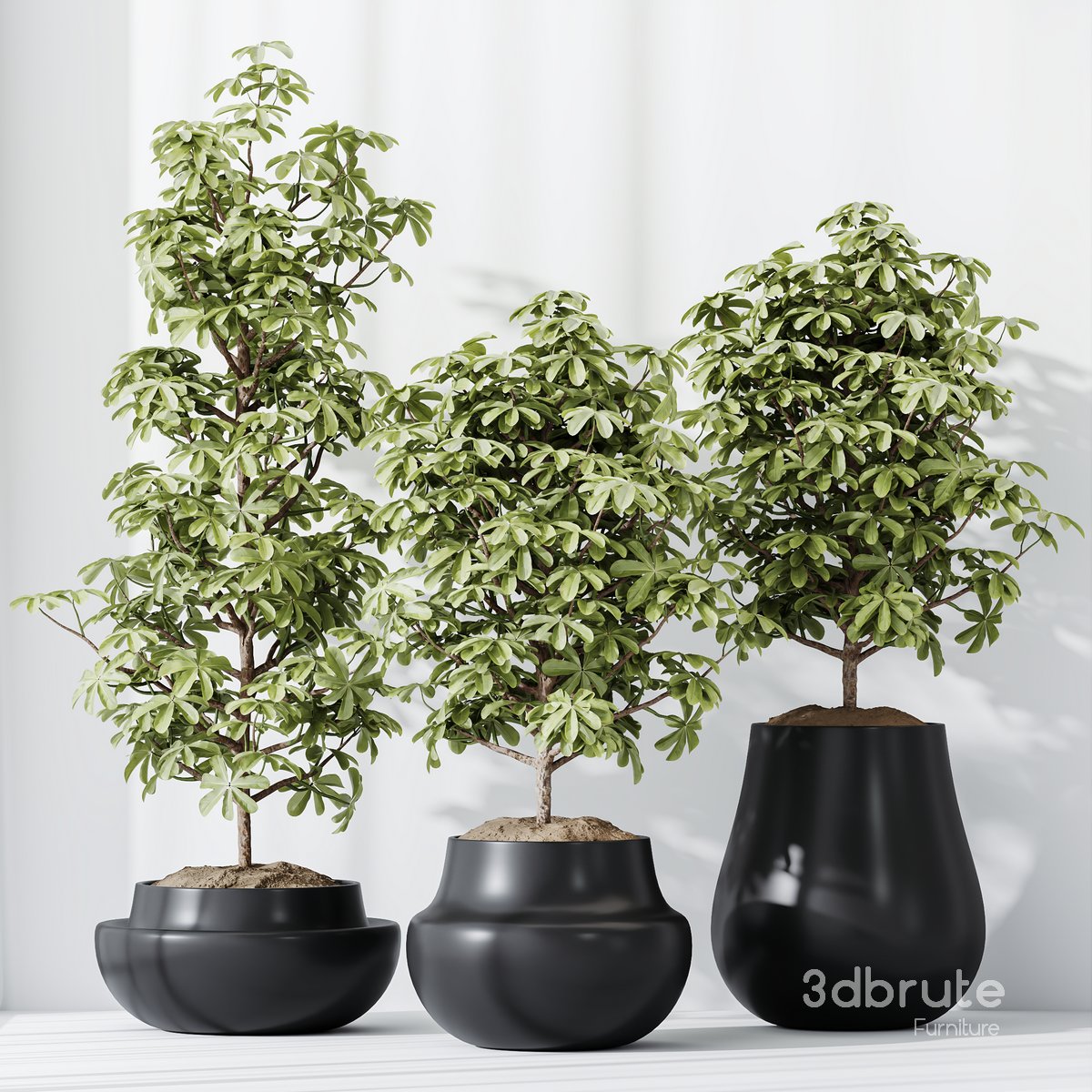 HQ HousePlants Schefflera Arboricola Umbrella Set03 3 Different 3D models in the scene Height: 1500mm & 1600mm & 2000mm Also known as the Dwarf Umbrella Tree, Schefflera arboricola Compacta boasts green, glossy splayed leaves bursting out in bunches, reminiscent of an umbrella. This variety features a plaited stem system with a compact bushy top, contrasting its darker green waxy foliage against the limey supple new growth. A fast-growing plant that can be trimmed into shape, making it ideal as a statement piece in an entrance or hallway. Sheflers have been very popular house plants for many years. They are easy to grow, undemanding and grow quickly. The ideal growing location will be a bright place, but without direct sunlight. Shefflers do not tolerate being moved, so the plant should be placed in a place where they can grow for a long time. We adore the twisted, knotted trunk of this Twisted Schefflera Tree. The Schefflera Tree is a wonderfully simple-to-manage pot of style that adds a touch of elegance to any room in your home. 1- Materials is archive (material library) Corona mtl + Vray mtl + Standard mtl 3- 4K texture + 4K material 4- JPEG (texture), MAX + MTL + OBJ + FBX 2012 5- 3dmodels: MAX + FBX 2012 + OBJ 6- Corona render + Vray render (Renderer Engine-MAX + FBX) Scanline render (Renderer Engine-MAX + OBJ) maps supported traditional 3ds Max texturing. (tiling coordinates) Note: To use the max file you need to use at 3dsmax 2015 |