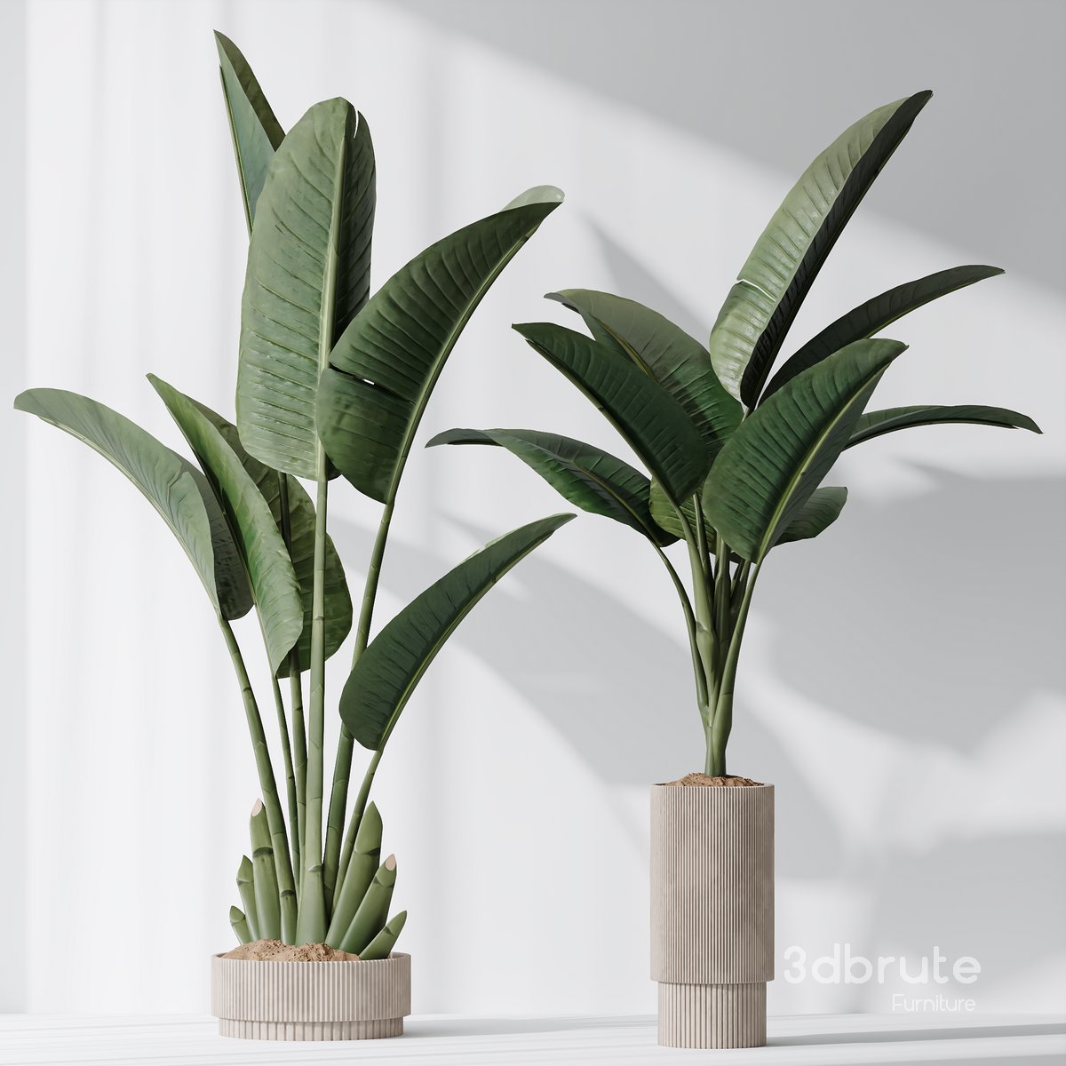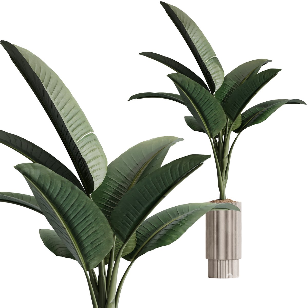 HQ Plants Bird Of ParadiseBird Vase Set02 2 Different 3D models in the scene Height: 2300mm & 2200mm Strelitzia reginae is a species of evergreen tropical herbaceous plant, native to South Africa. Given its own family Strelitziaceae by taxonomists, it is still closely related to bananas (Musaceae). Many often mistakenly call this plant for the ??banana tree?? because it looks like banana plants. These regal plants (for which they are named, reginae) are named for the beautiful, orange crane-like flowers that they produce, like birds of paradise. They are known for bright orange-blue colors, however, there are also white birds of paradise. Under the right conditions, including full, southern light exposure, proper humidity, and temperature, Bird of Paradise may flower indoors, although this is rare. 1- Materials is archive (material library) Note: - To use the max file you need to use at 3dsmax 2015 If you have any problems for setting up the models, |