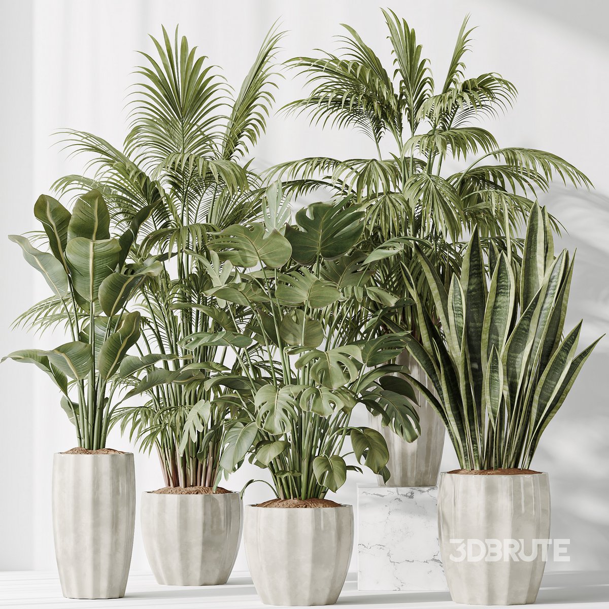 Indoor plants set 70 Majesty Cat Reed Palm and ParadiseBird and Giant Monstera Deliciosa and Green Sansevieria 5 Different 3D models in the scene Height: 165 cm & 205 cm & 250 cm 1- Materials is archive (material library) Corona mtl + Vray mtl + Standard mtl 3- 4K texture + 4K material 4- JPEG (texture), MAX + MTL + FBX 2012 + OBJ 5- 3dmodels: MAX + FBX 2012 + OBJ 6- Corona render + Vray render (Renderer Engine-MAX + FBX) Standard render (Renderer Engine - OBJ) maps supported traditional 3ds Max texturing. Note: To use the max file you need to use at 3dsmax 2015 |