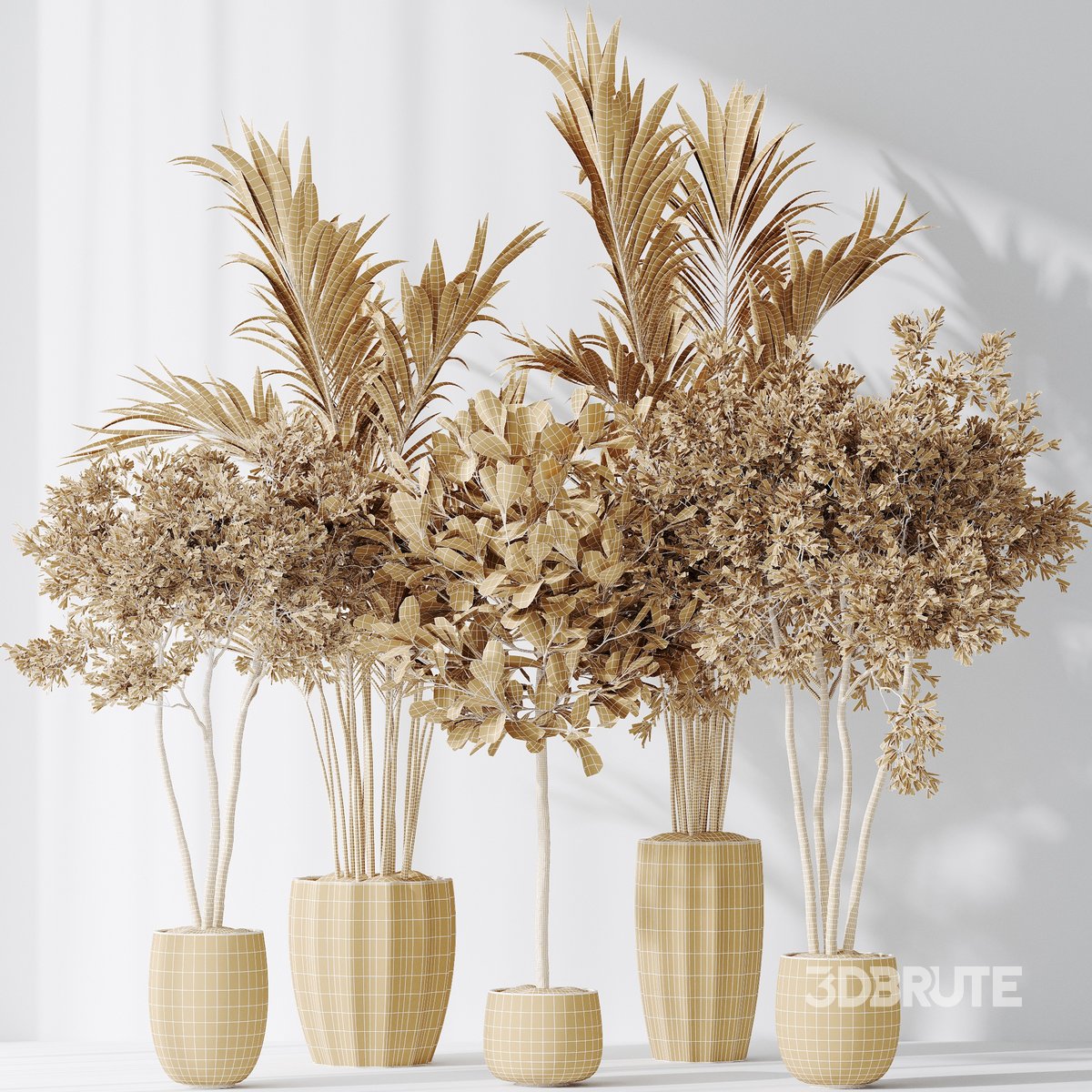 Indoor plants set 72_Majesty Cat Reed Palm_Ficus Moclame Indian Laurel_Kalamata Wilsonii Chemlali Olive 5 Different 3D models in the scene Height: 165 cm & 180 cm & 195 cm & 245 cm & 290 cm 1- Materials is archive (material library) Corona mtl + Vray mtl + Standard mtl 3- 4K texture + 4K material 4- JPEG (texture), MAX + MTL + FBX 2012 + OBJ 5- 3dmodels: MAX + FBX 2012 + OBJ 6- Corona render + Vray render (Renderer Engine-MAX + FBX) Standard render (Renderer Engine-OBJ) maps supported traditional 3ds Max texturing. Note: To use the max file you need to use at 3dsmax 2015 |