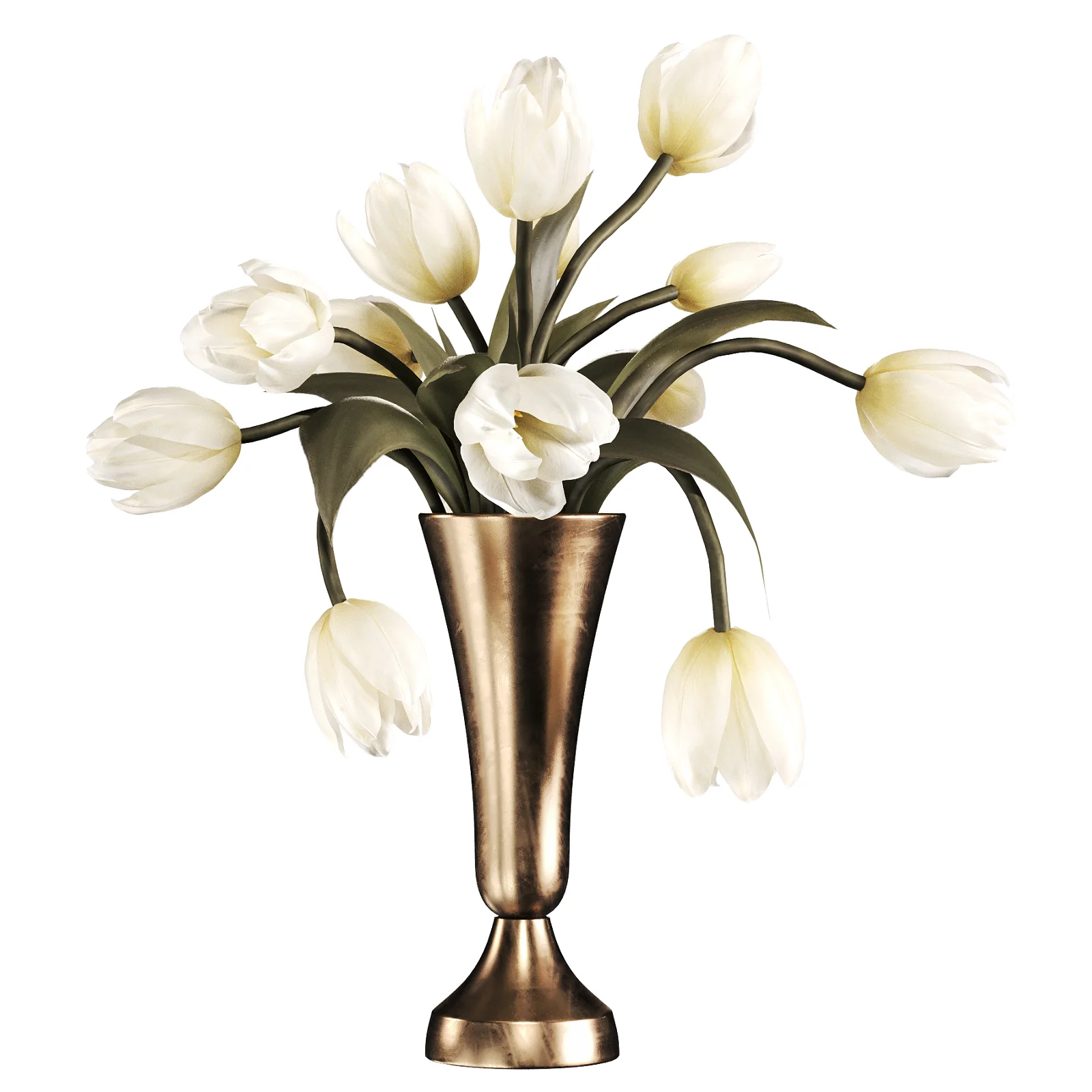 Name: Ivory Tulips in Brass Vase Technical Details: Description: The creamy white petals display subtle translucency and gentle tonal variations, capturing the realistic softness of fresh tulips. The brushed brass vase introduces a warm metallic contrast, adding depth, reflection, and a luxurious accent to the composition. The combination of soft florals and polished metal makes this piece both calming and visually striking. This decorative set works beautifully in living rooms, dining areas, bedrooms, hotel lobbies, reception desks, luxury retail interiors, and styled lifestyle renders. It functions equally well as a focal centerpiece or as a complementary styling element in modern, contemporary, classic, and luxury interior scenes. Key Features: Compatibility Notes: Optimization Notes: Tags: |