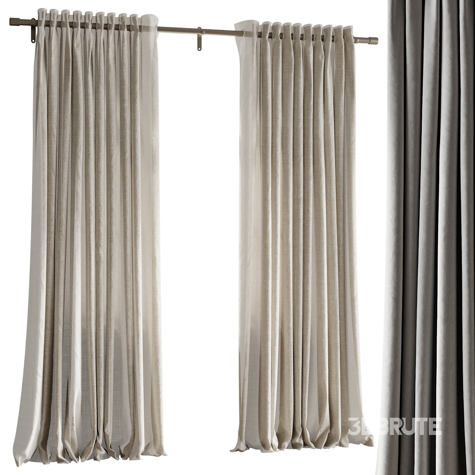 Tags: Japandi, blackout curtains, linen curtains, pleated curtains, minimalist design, Scandinavian style, Japanese interior, home decor, modern design, neutral tones, fabric model, realistic folds, interior rendering, light blocking, soft texture, bedroom decor, living room, cozy home, natural materials, elegant interior, 3D curtain model