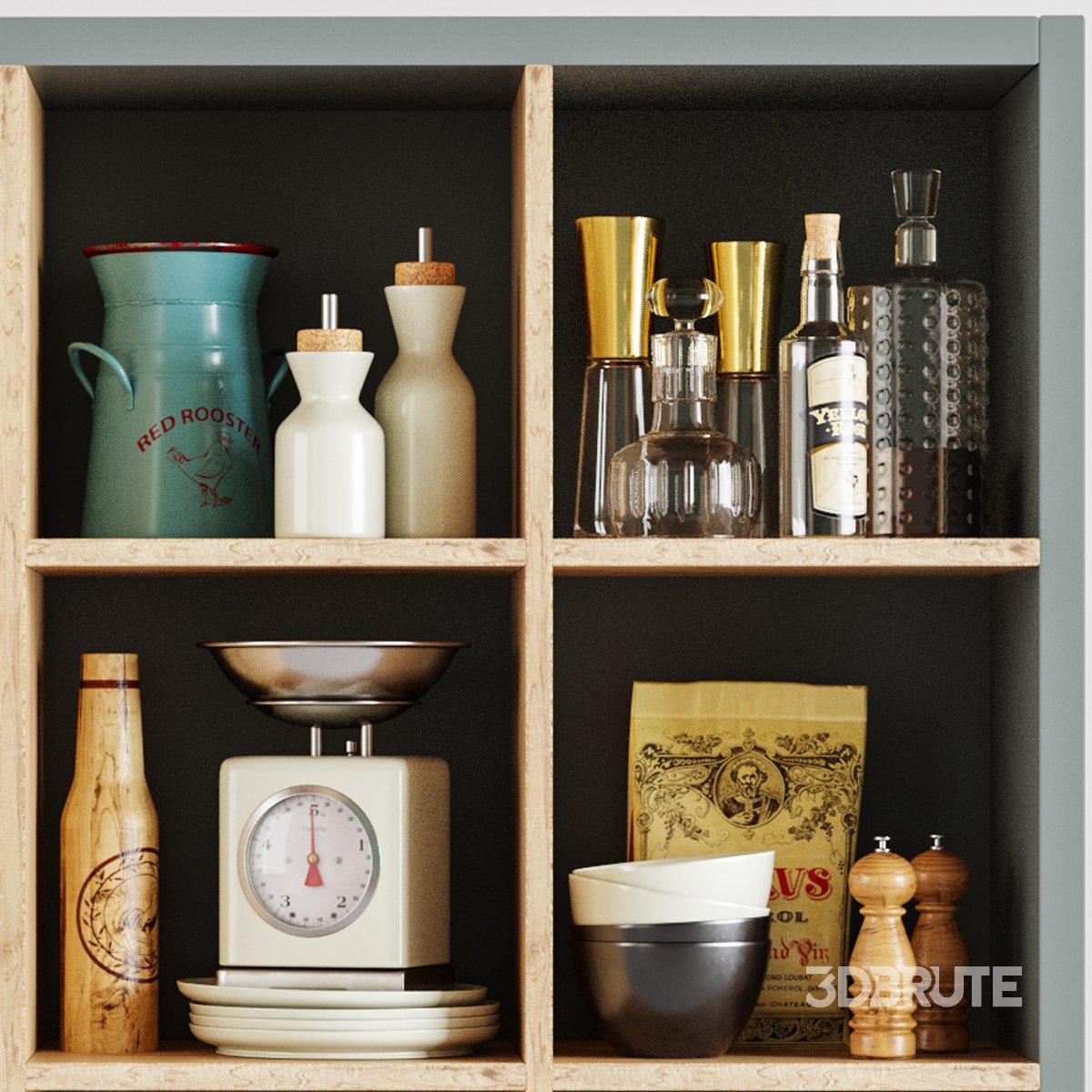 Decorative set for the kitchen. The archive scene 3ds max 2014 and file obj. On all objects Turbosmooth. Materials for Corona. High quality model. |