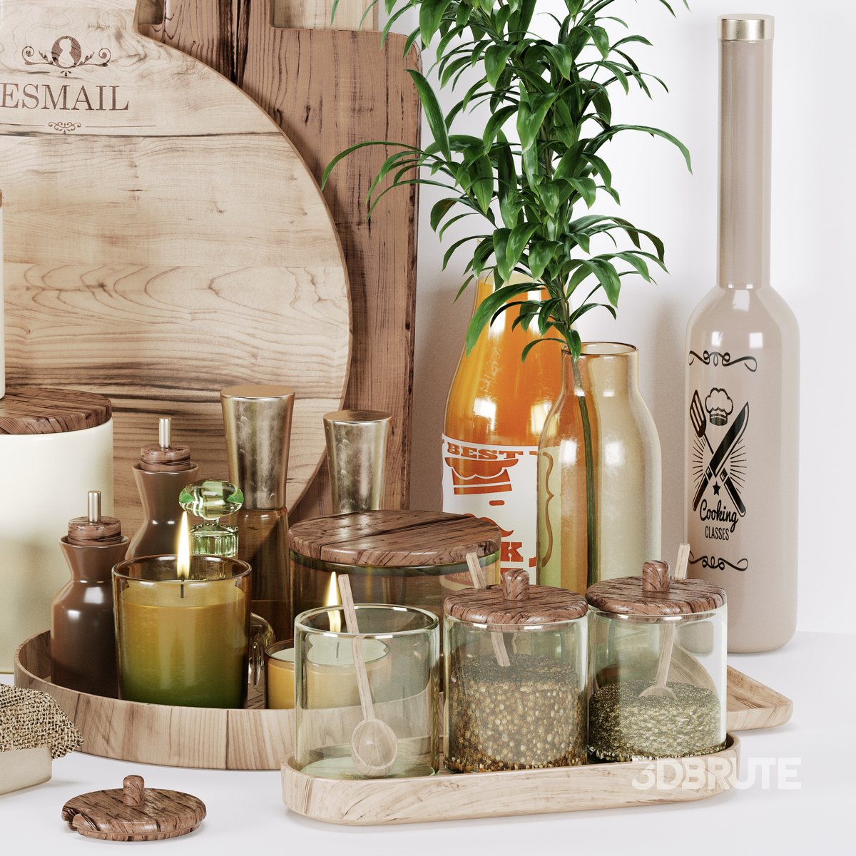 Decorative set for the kitchen. The archive scene 3ds max 2020 and file obj. On all objects Turbosmooth. Detailed enough for close up renders. Materials for Corona. |