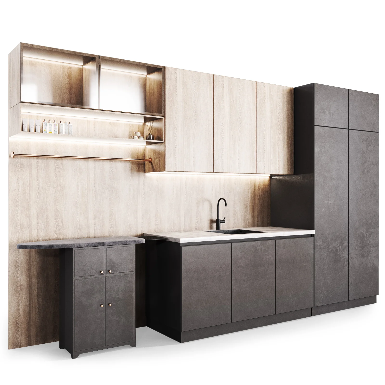 Name: laundry, Furniture for the laundry room with ironing board and closet. |