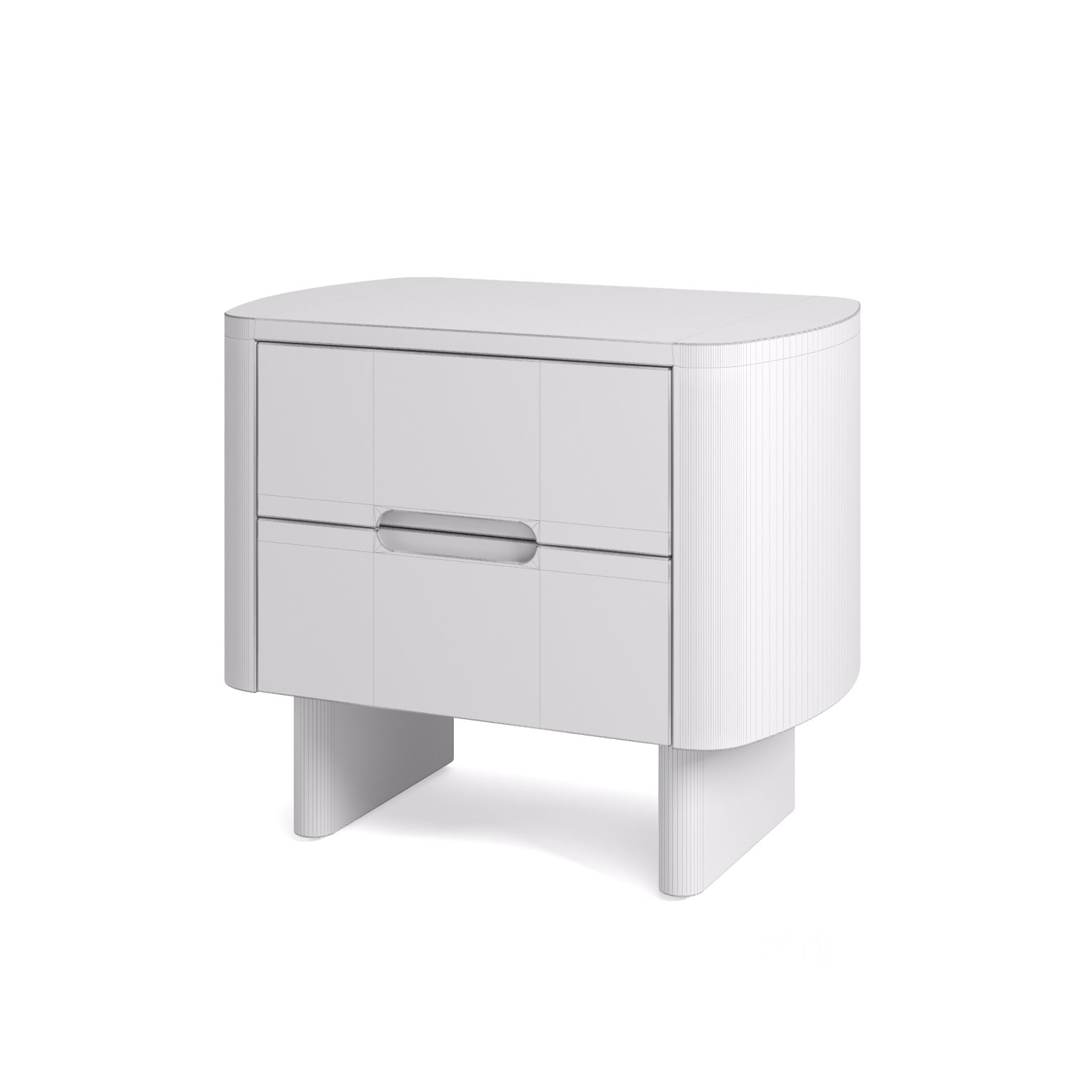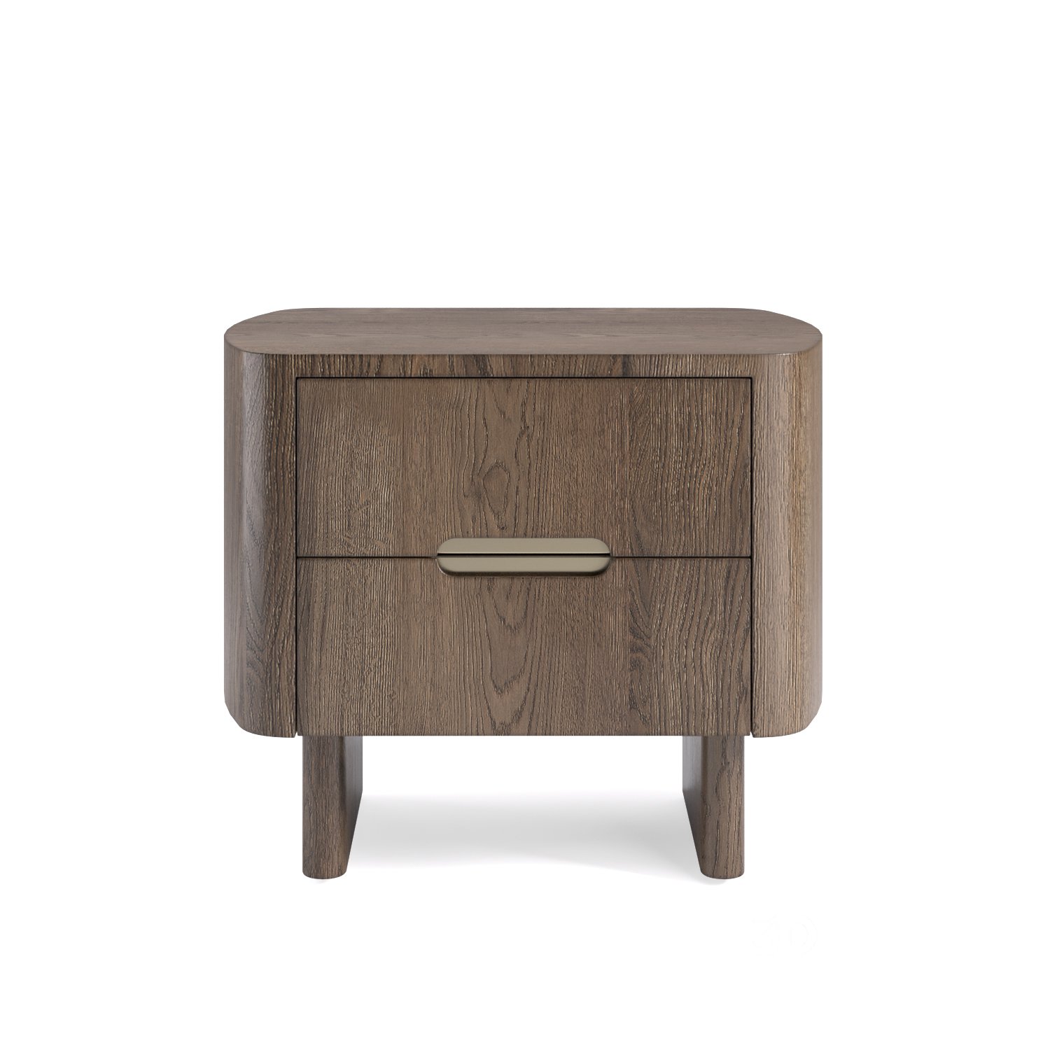 Bedside table made from wood, with two drawers and a recessed handle in a modern style. Materials: brushed brown ash, brass Link: |